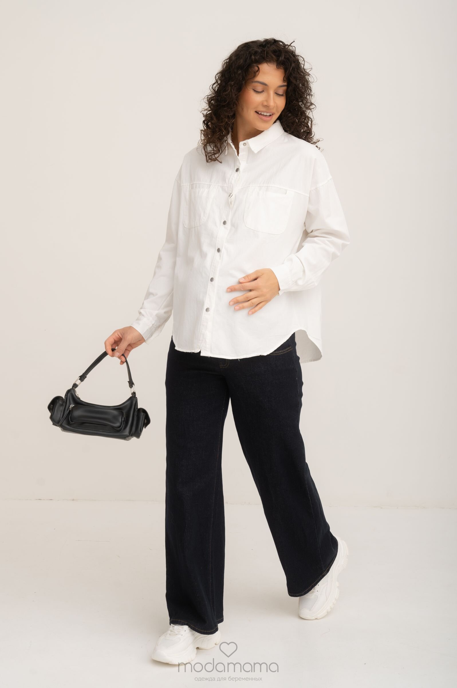 Джинсы свободного прямого кроя для беременных. Высокий трикотажный бандаж на передней части регулируется пуговкой по верху. Сзади по спинке резинка, обеспечивающая плотное прилегание к пояснице. Выполнены из мягкой, эластичной джинсы средней плотности. Размеры соответствуют 25-XS; 26-S; 27- M; 28-L; 29-XL.