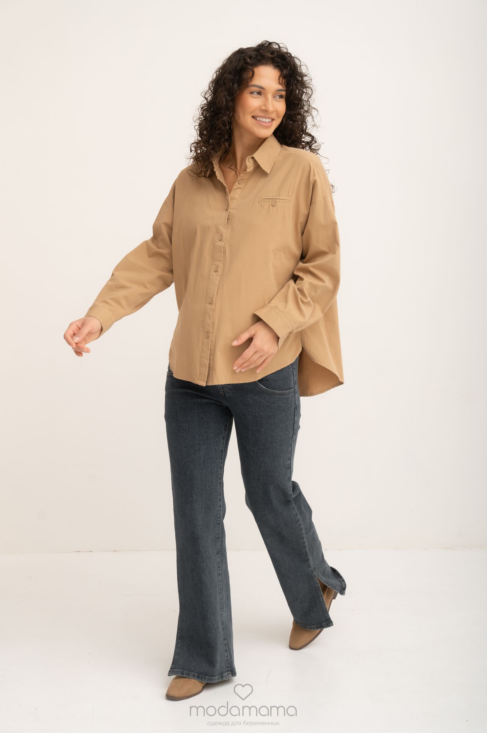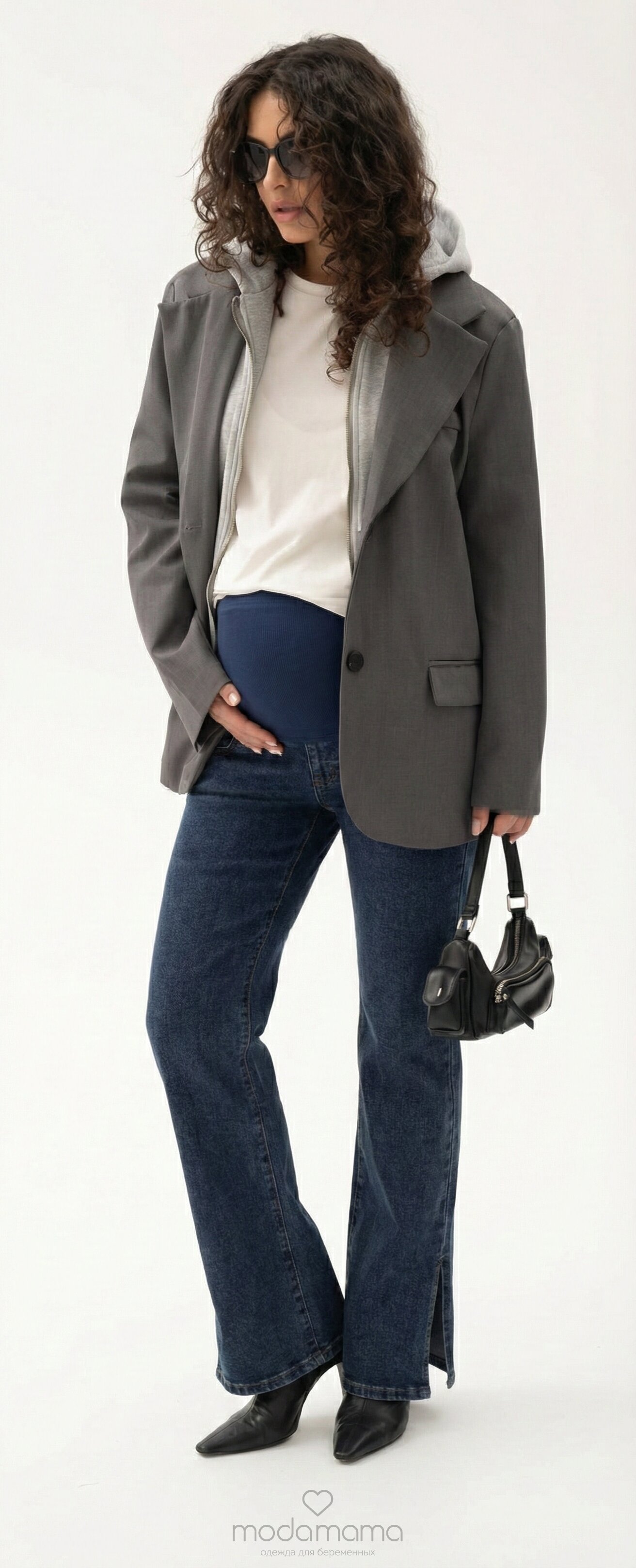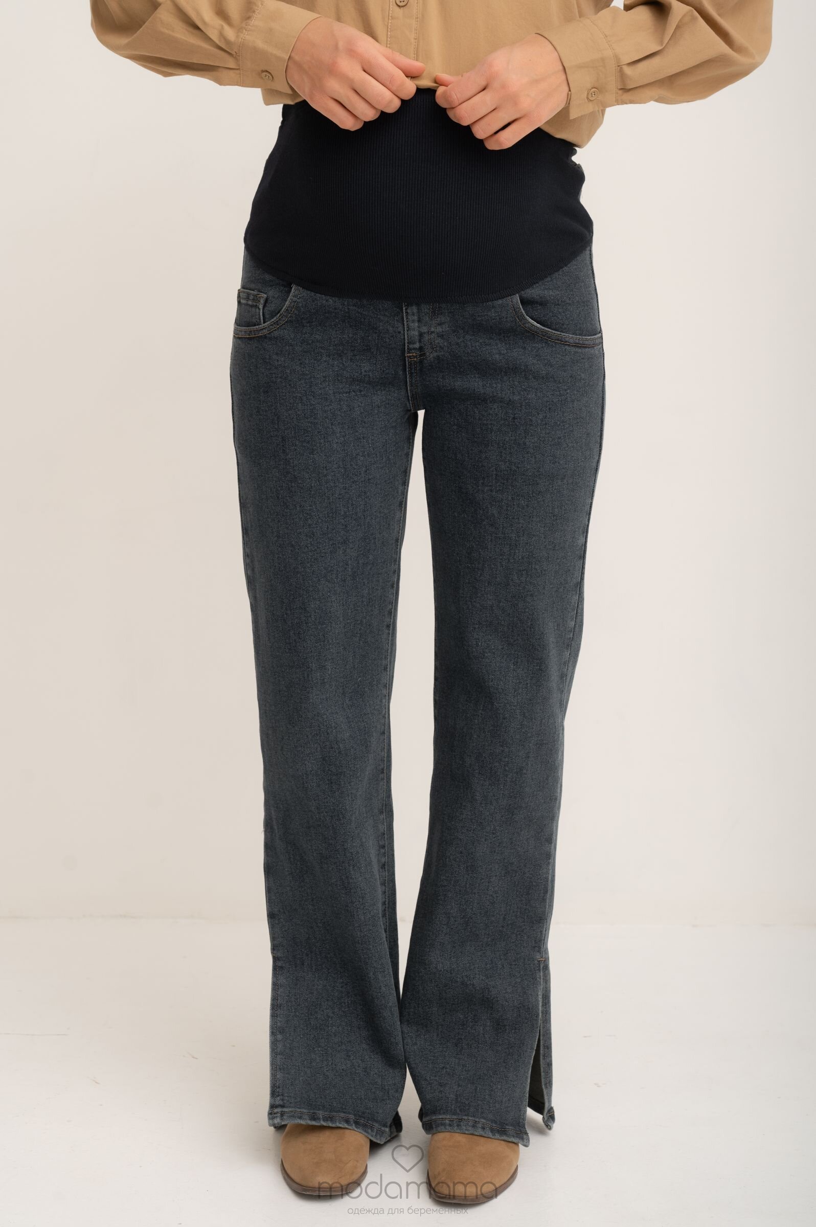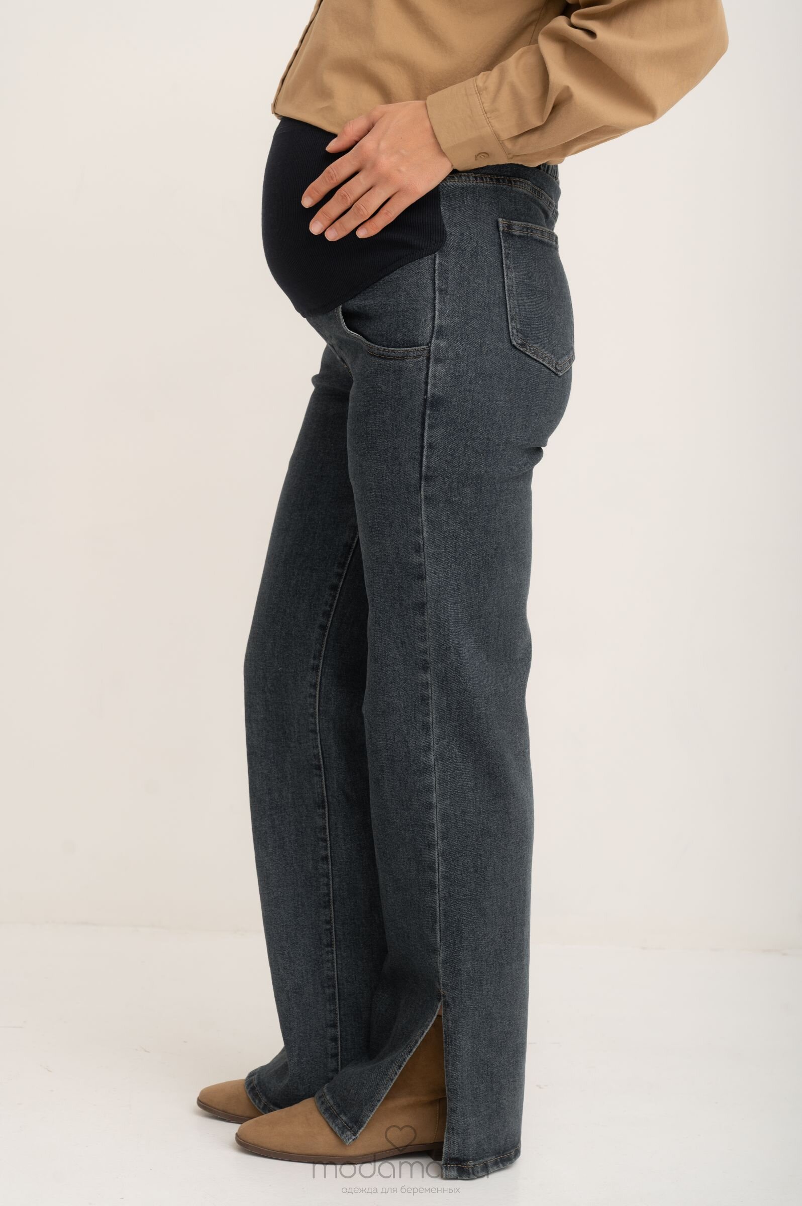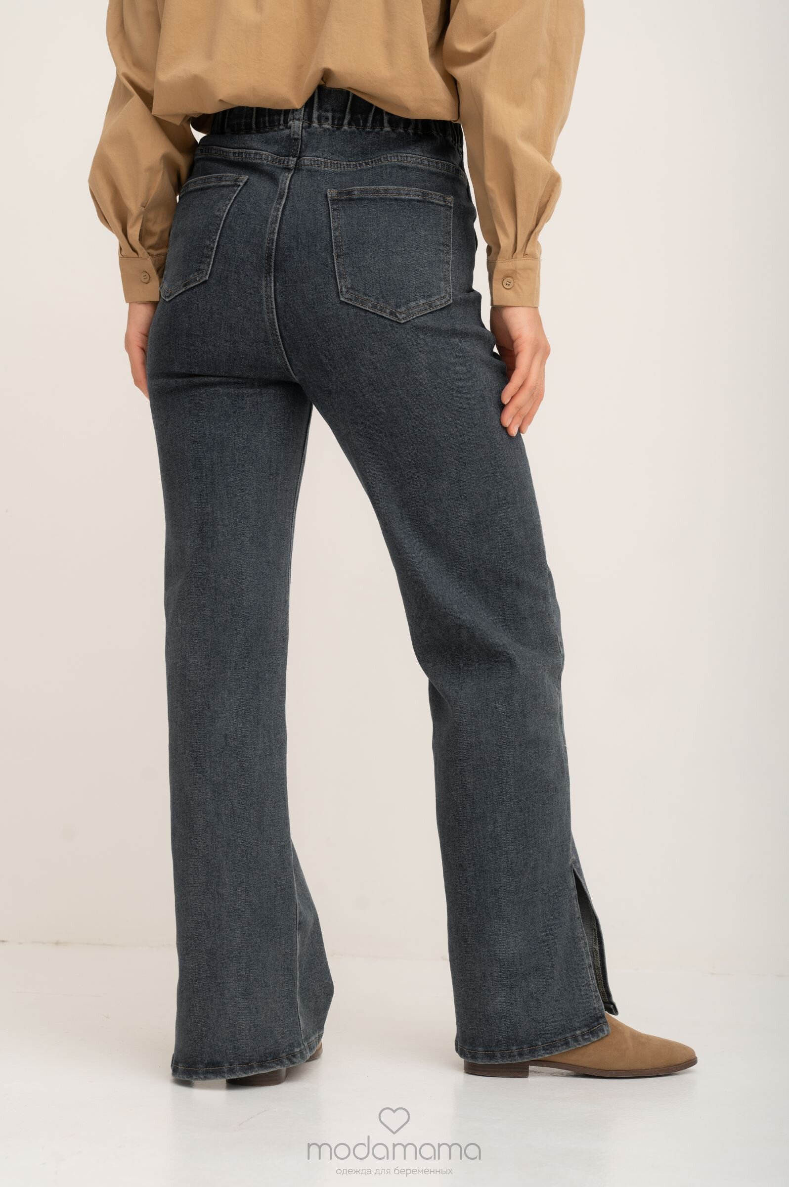 Джинсы для беременных свободного прямого кроя с разрезами по внешнему шву. Сзади по спинке резинка, обеспечивающая плотное прилегание к пояснице. Высокий трикотажный бандаж на передней части регулируется пуговкой по верху. Размеры соответствуют 25-XS; 26-S; 27- M; 28-L; 29-XL.
