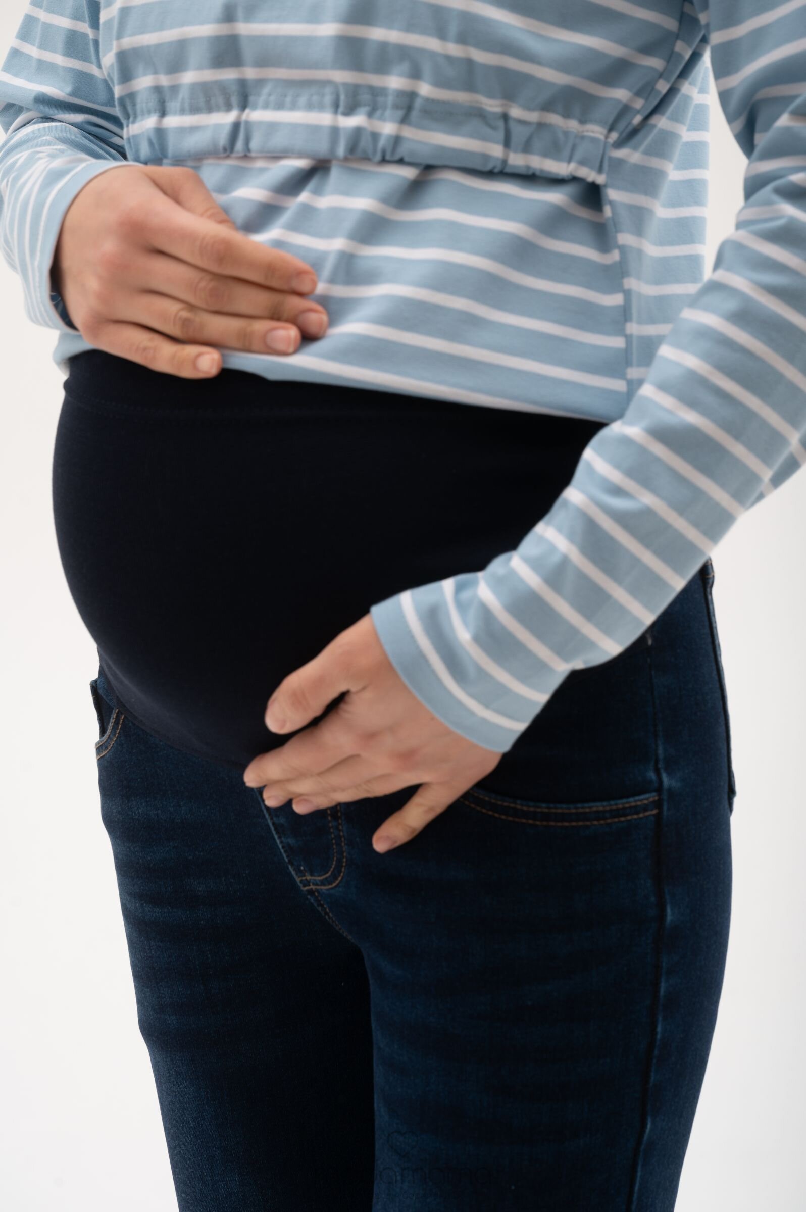 Джинсы свободного прямого кроя для беременных. Сзади по спинке резинка, обеспечивающая плотное прилегание к пояснице. Высокий трикотажный бандаж на передней части регулируется пуговкой по верху. Выполнены из плотной, мягкой, эластичной джинсы с небольшим утеплением (байка). Размеры соответствуют 25-XS; 26-S; 27- M; 28-L; 29-XL.