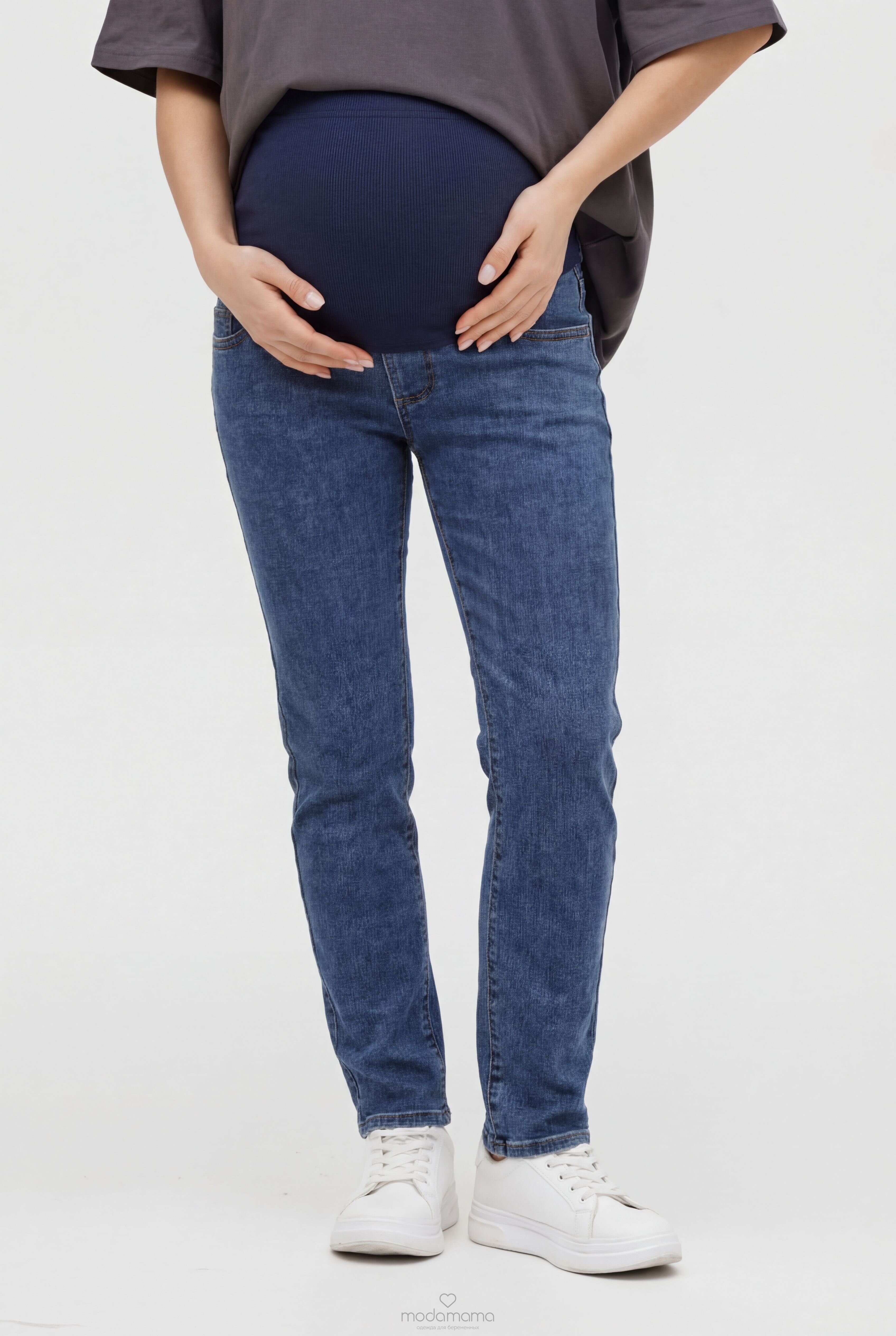 Джинсы зауженного кроя для беременных. Немного укороченные, отлично подойдут на невысокий рост. Сзади по спинке резинка, обеспечивающая плотное прилегание к пояснице. Высокий трикотажный бандаж на передней части регулируется пуговкой по верху. Размеры соответствуют 25-XS; 26-S; 27- M; 28-L; 29-XL.