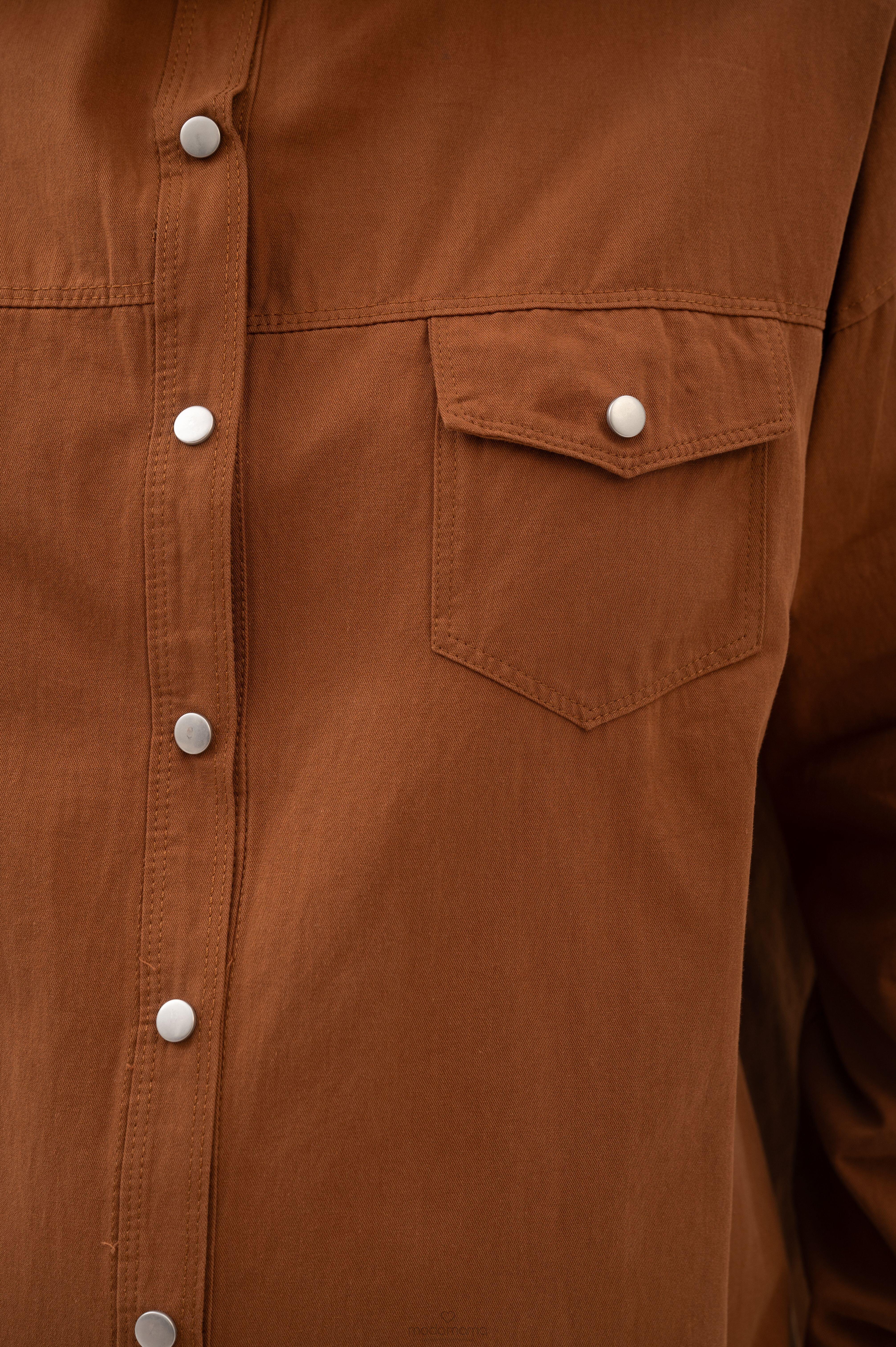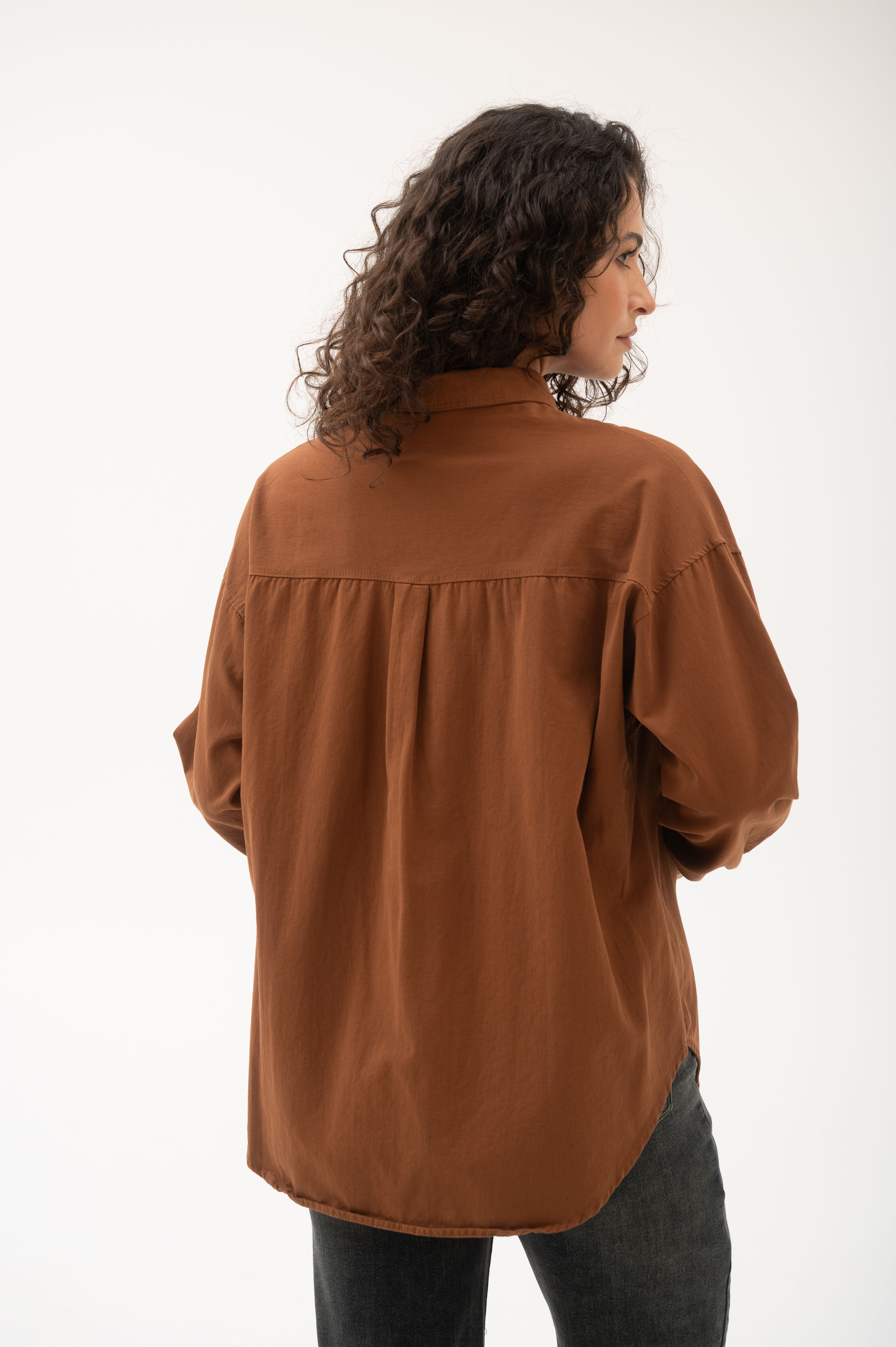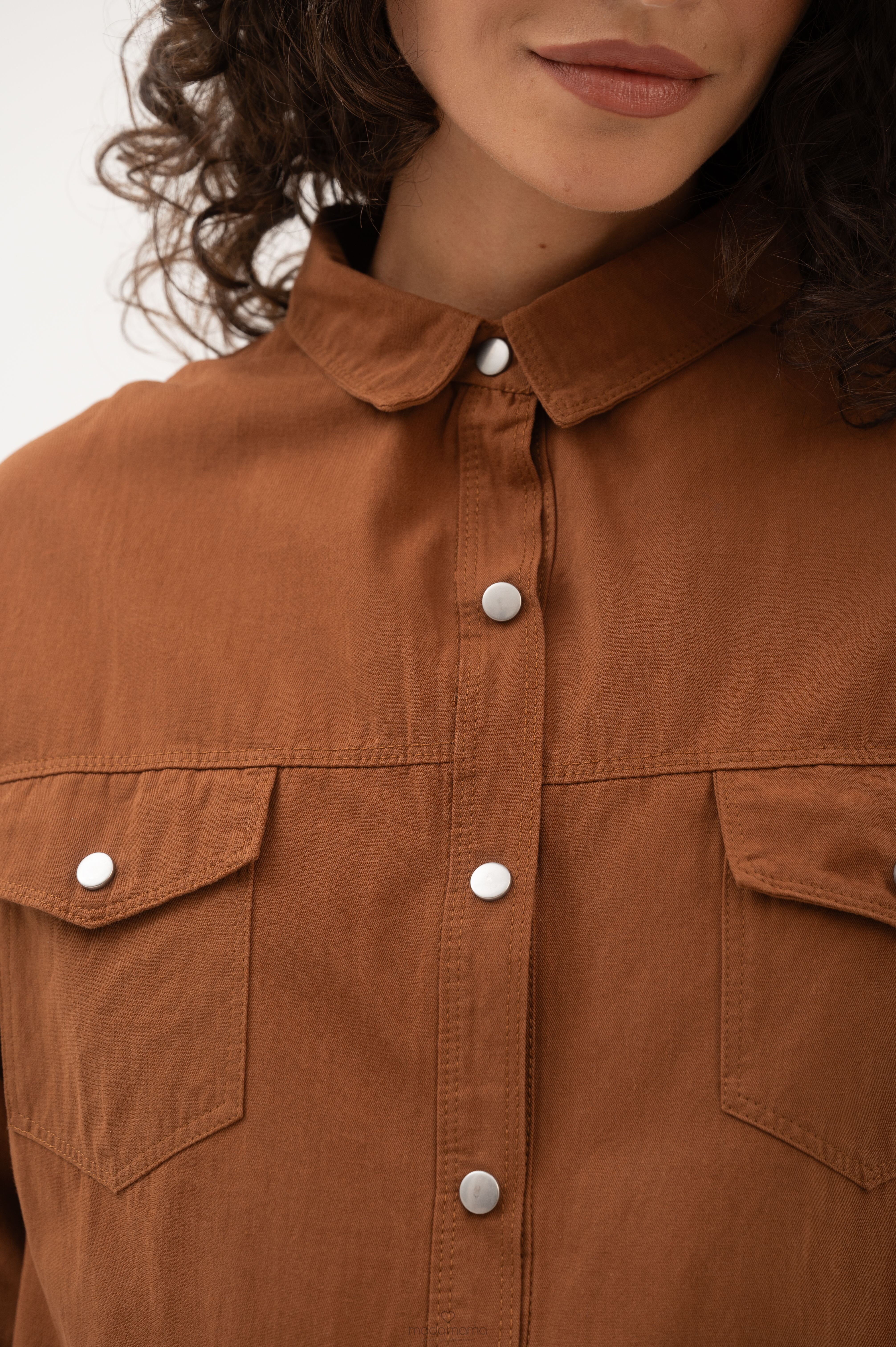 Рубашка на кнопках свободного универсального силуэта в стиле оверсайз со спущенным плечом. Выполнена из мягкой тянущейся джинсы средней плотности.
