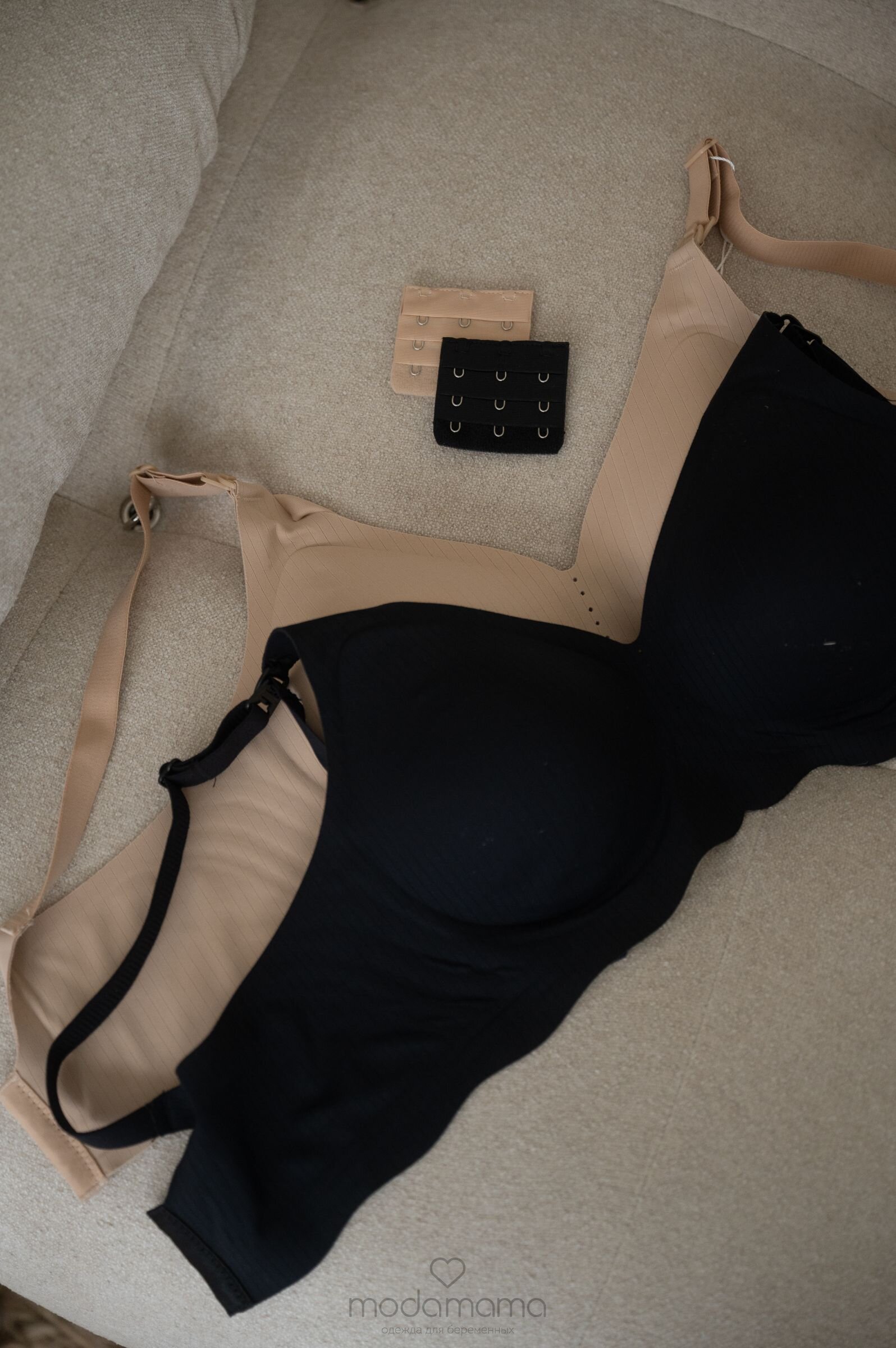 Бесшовный бюстгальтер-топ для беременных и кормящих мам без косточек. Выполнен из мягкой дышащей микрофибры. Чашки отстёгиваются. Размеры соответствуют: M(42-44), L(44-46), XL(46-48), XXL(48-50), XXXL(50-52)