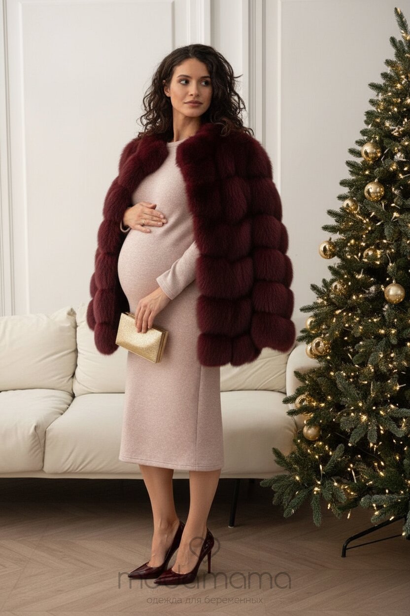 Платье прямого полуприлегающего силуэта для беременных. Сбоку разрез для удобства при шаге. Выполнено из плотного, эластичного, вязаного трикотажа с люрексом, который придаёт платью праздничный, деликатный, мягкий блеск и не осыпается.