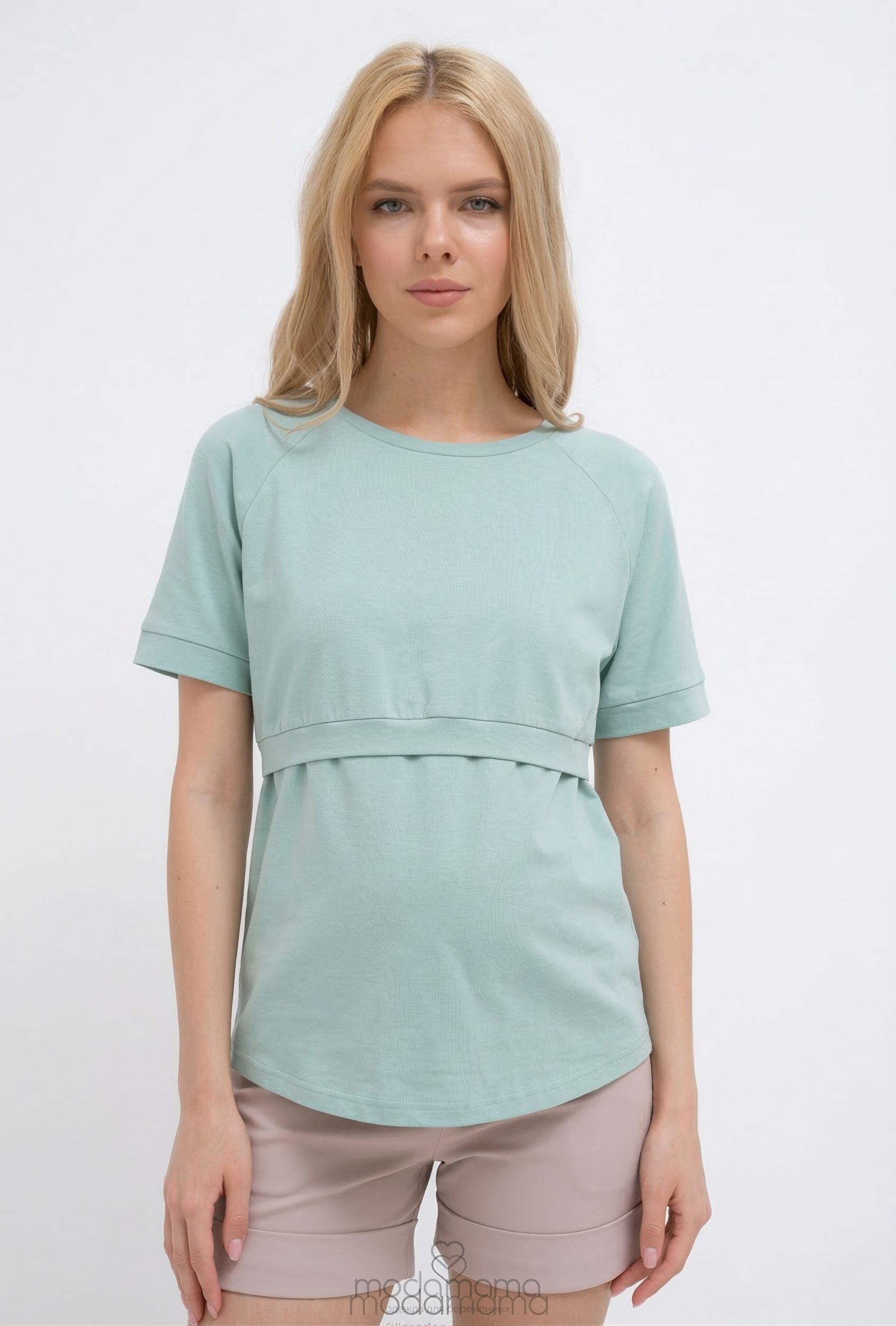 Футболка для беременных и кормящих мам со спущенным плечом. Выполнена из тонкого хлопкого трикотажа с добавлением эластана. Секрет кормления в двухслойной верхней части.