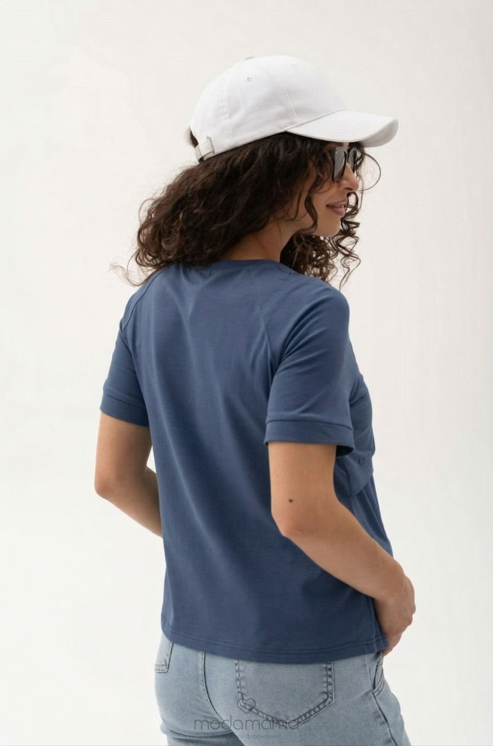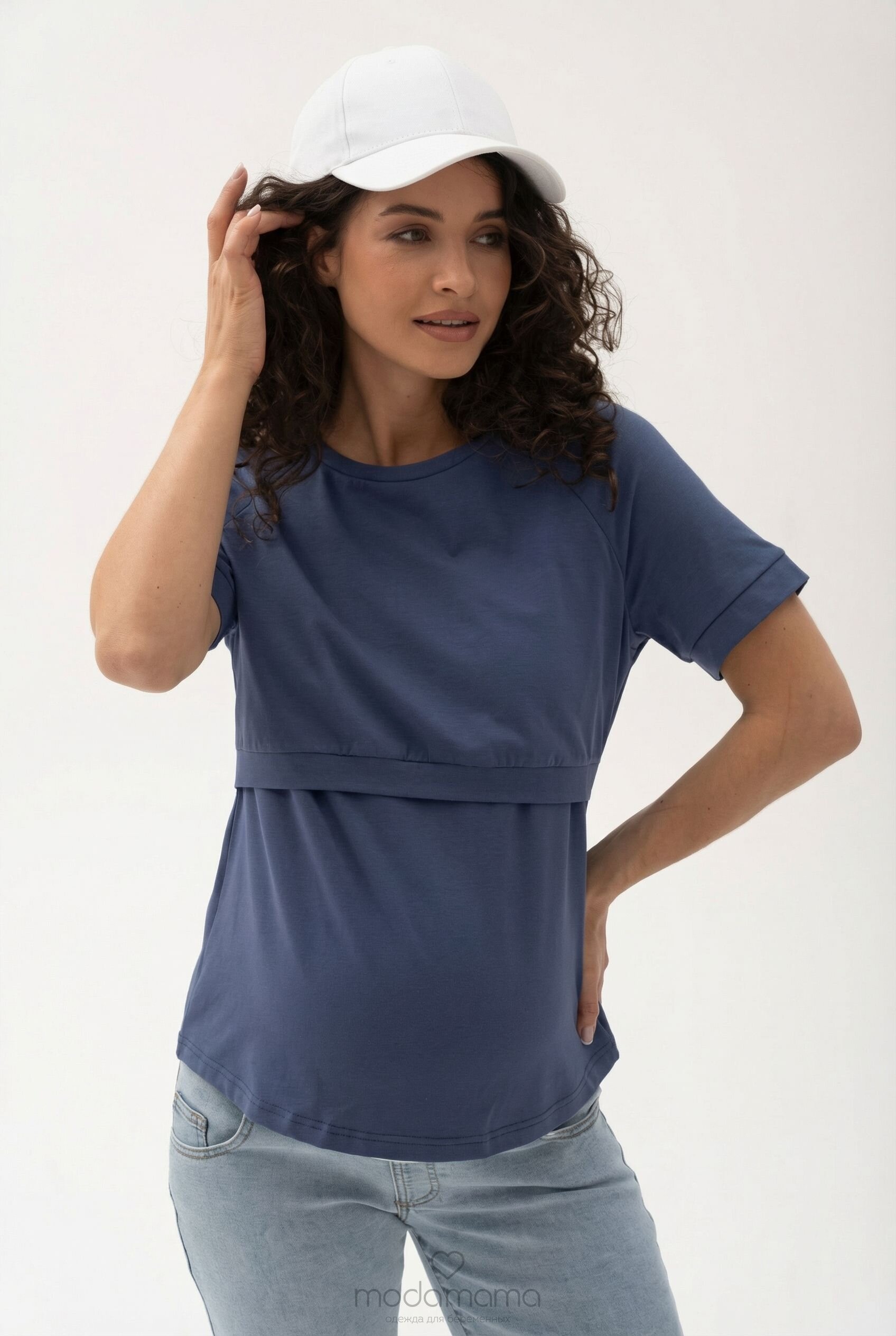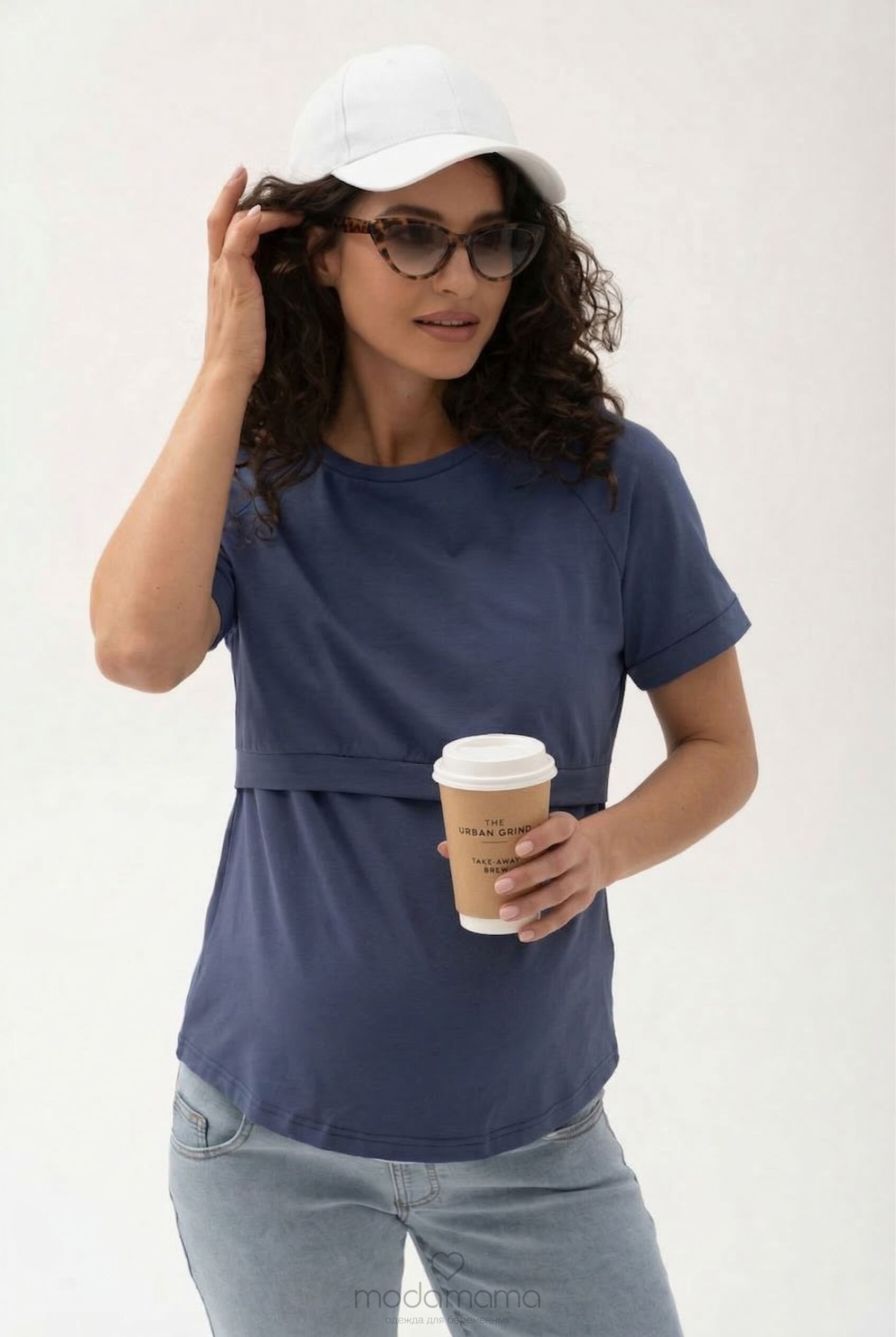 Футболка для беременных и кормящих мам со спущенным плечом. Выполнена из тонкого хлопкого трикотажа с добавлением эластана. Секрет кормления в двухслойной верхней части.