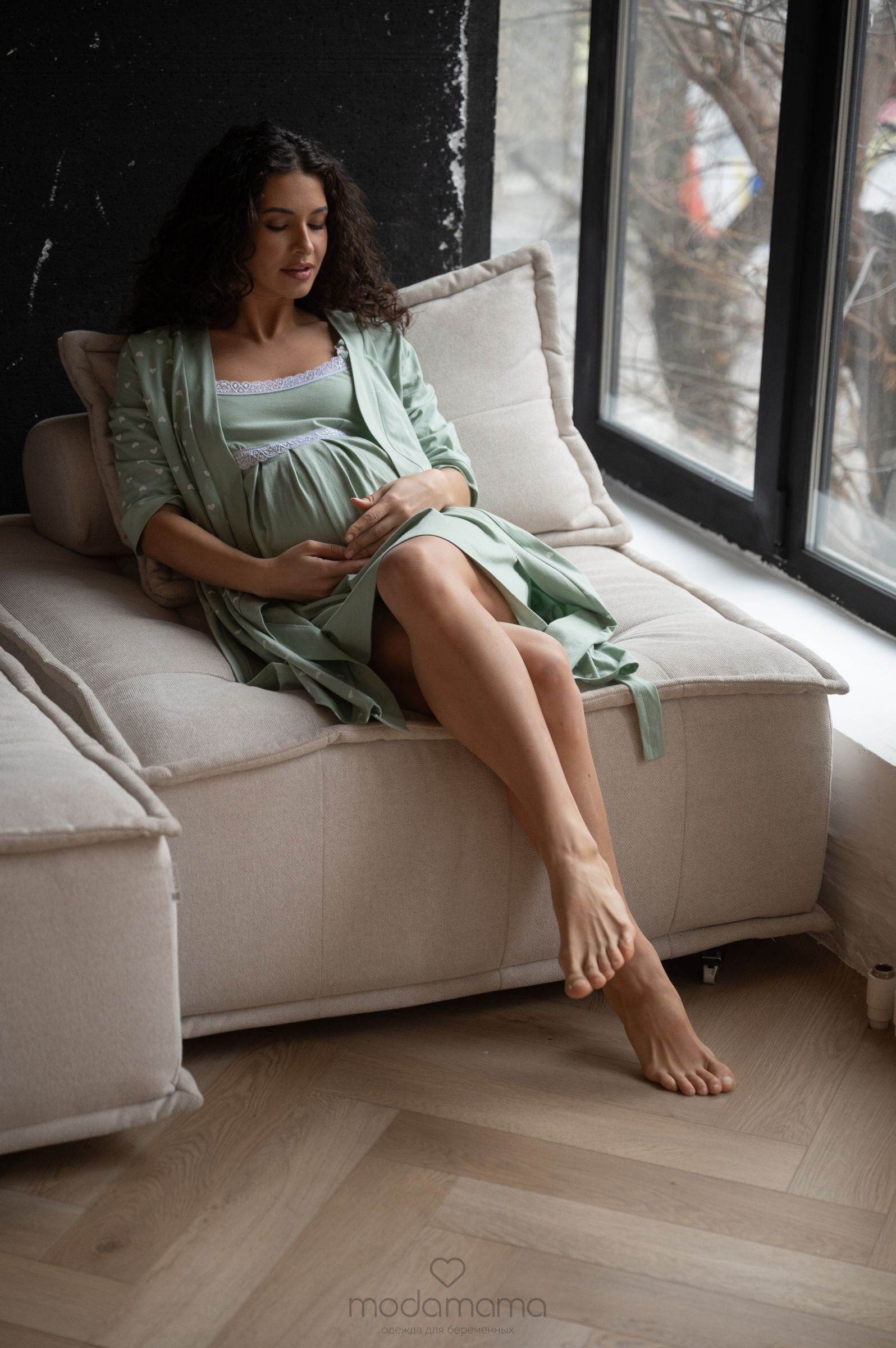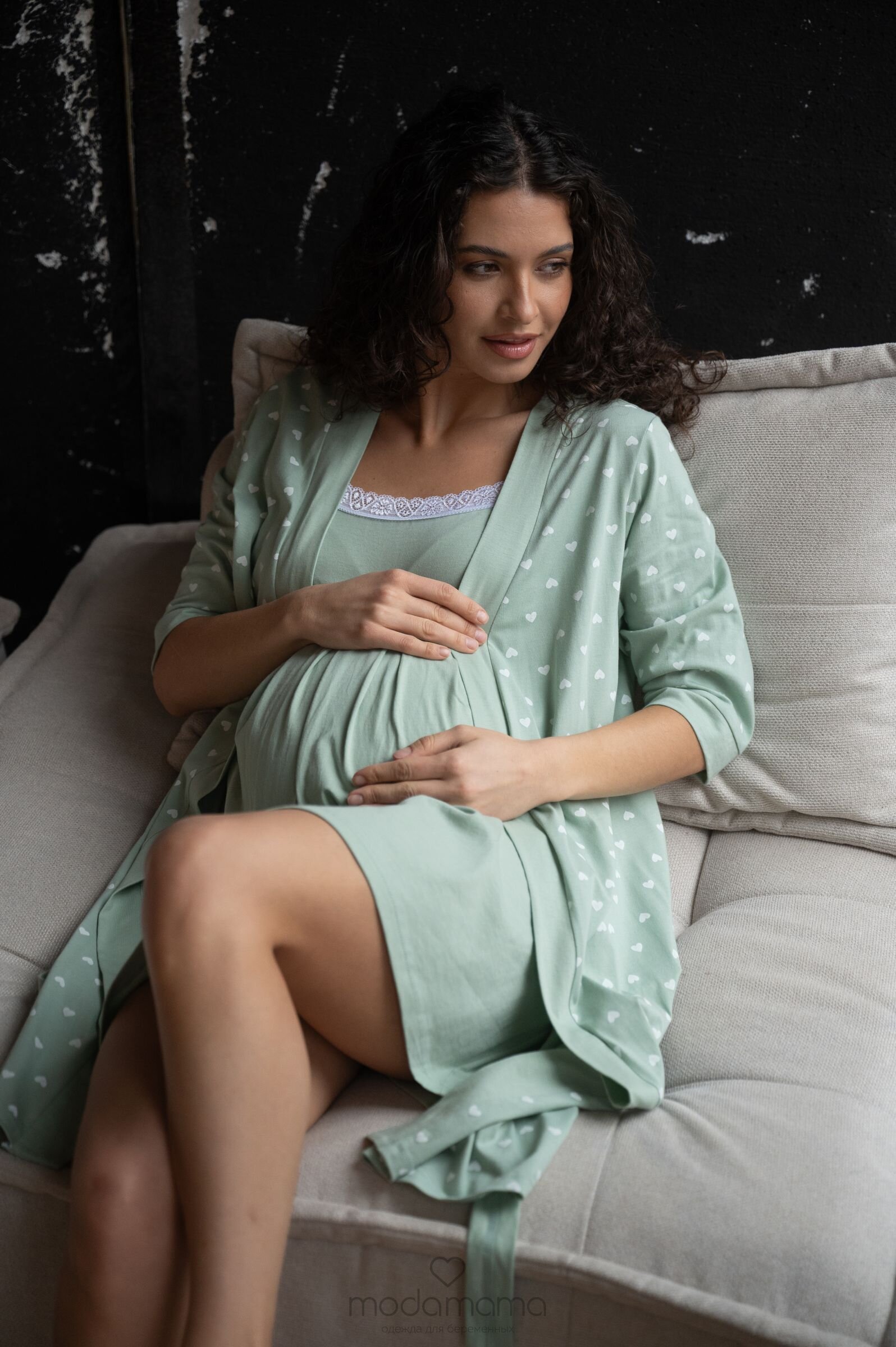 Удобный комплект для роддома, состоящий из халата и ночной сорочки. Халат с пояском на кулиске, сорочка с нежным принтом имеет специальные застежки для кормления. Стильная широкая окантовка халата по краям и на рукавах 3/4 великолепно солирует на фоне основной расцветки. Пояс-завязка эффектно подчеркивает животик и создает изумительно женственный силуэт, а мягко струящийся материал из чистого хлопка создает непревзойденный комфорт. Узкие бретели ночной сорочки подчеркивают изящность модели, для оптимальной посадки их можно регулировать. Благодаря удобной застежке-клипсе лиф легко отстегивается одним движением руки
