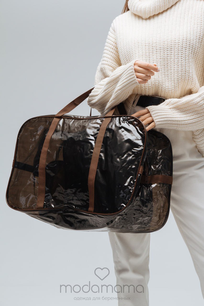 Сумка для роддома из тонированной ПВХ-плёнки для упаковки детских и взрослых вещей с ручками из плотного текстильного материала. После родов её удобно взять с собой в бассейн, фитнес-зал или летом на пляж. 54*33*24 см.
