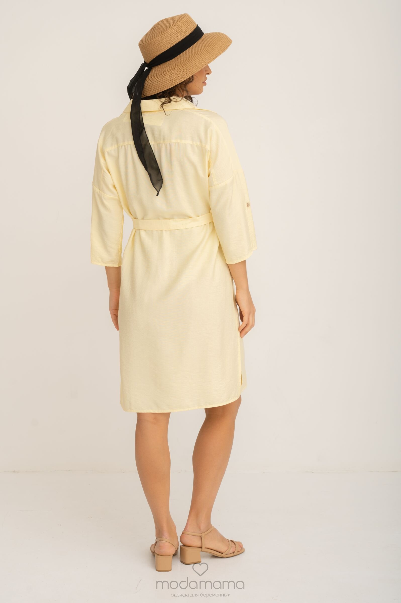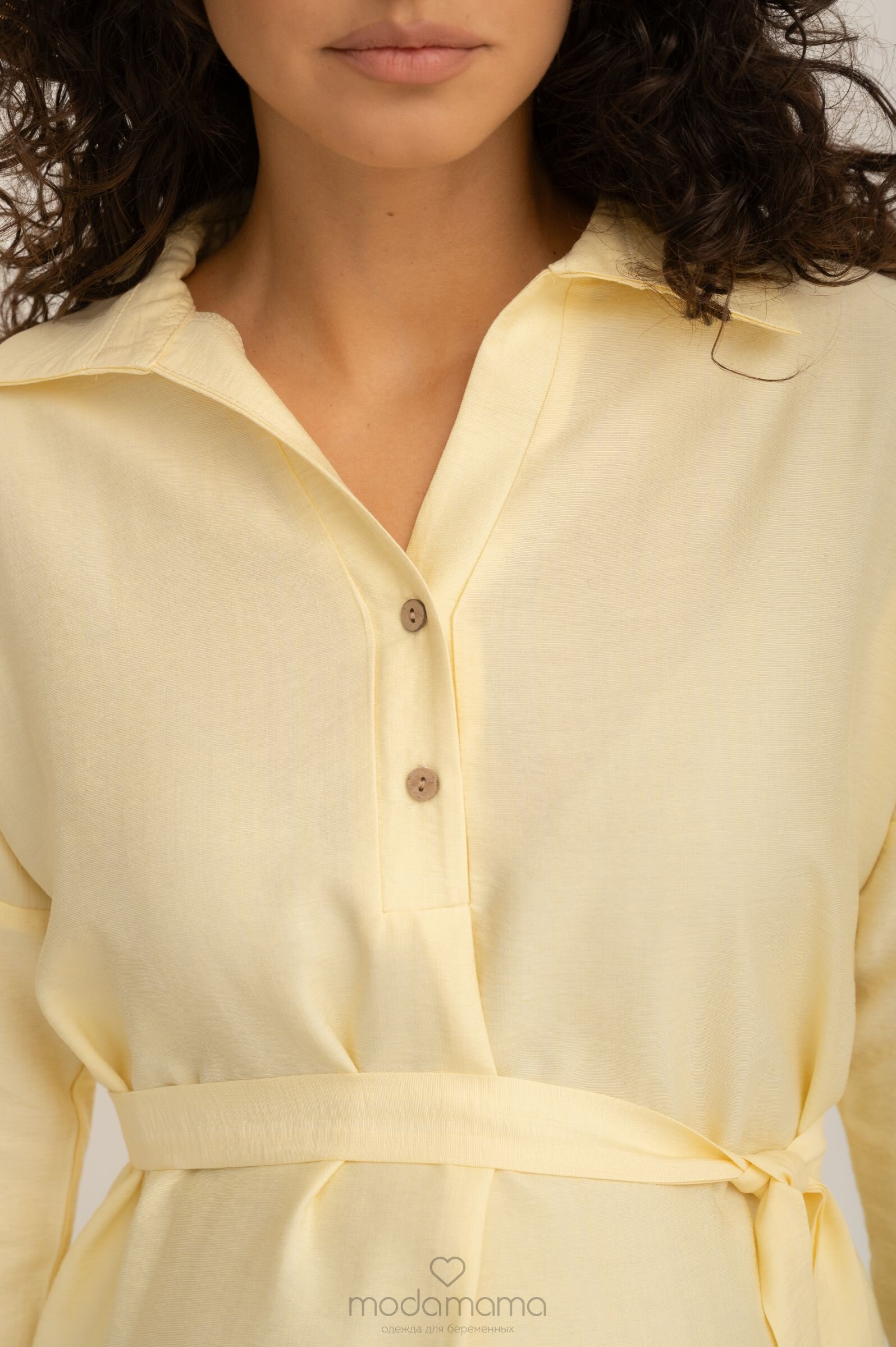 Платье-рубашка прямого силуэта для беременных и кормящих мам. Под грудью заложен защип для растущего животика. Благодаря съёмному поясу, можно подчеркнуть талию или носить после беременности. Рукава 3/4 застегиваются на пату, длину рукава можно регулировать. Секрет для кормления - в планке на груди. Выполнено из тонкой плательной ткани с лёгким эффектом жатости.