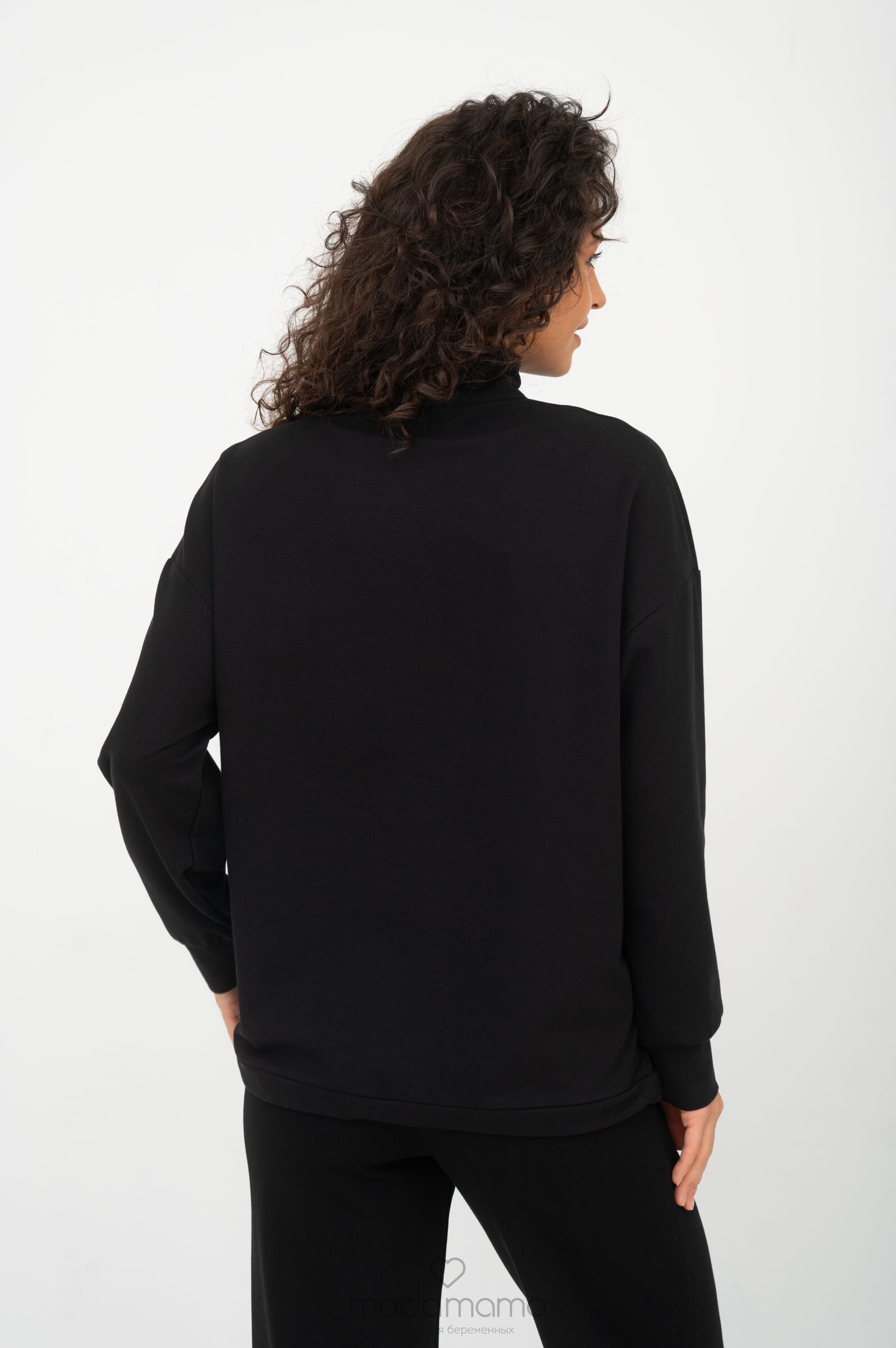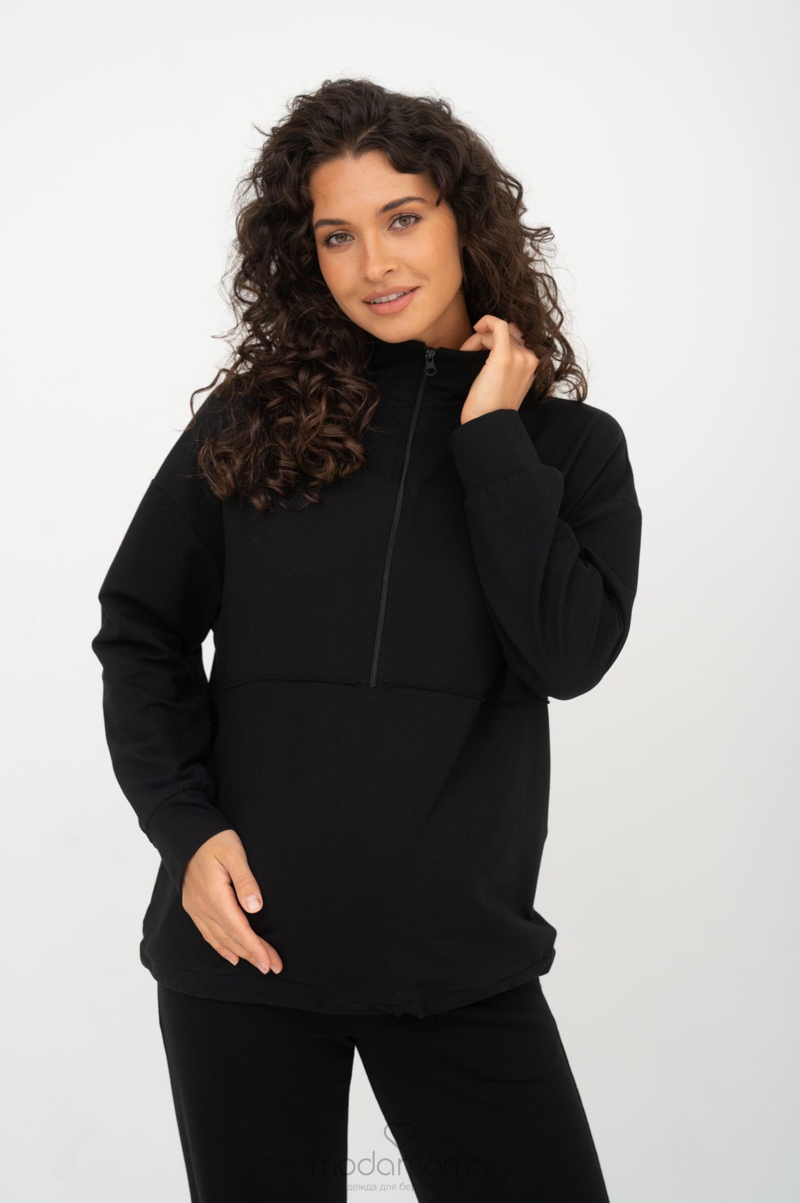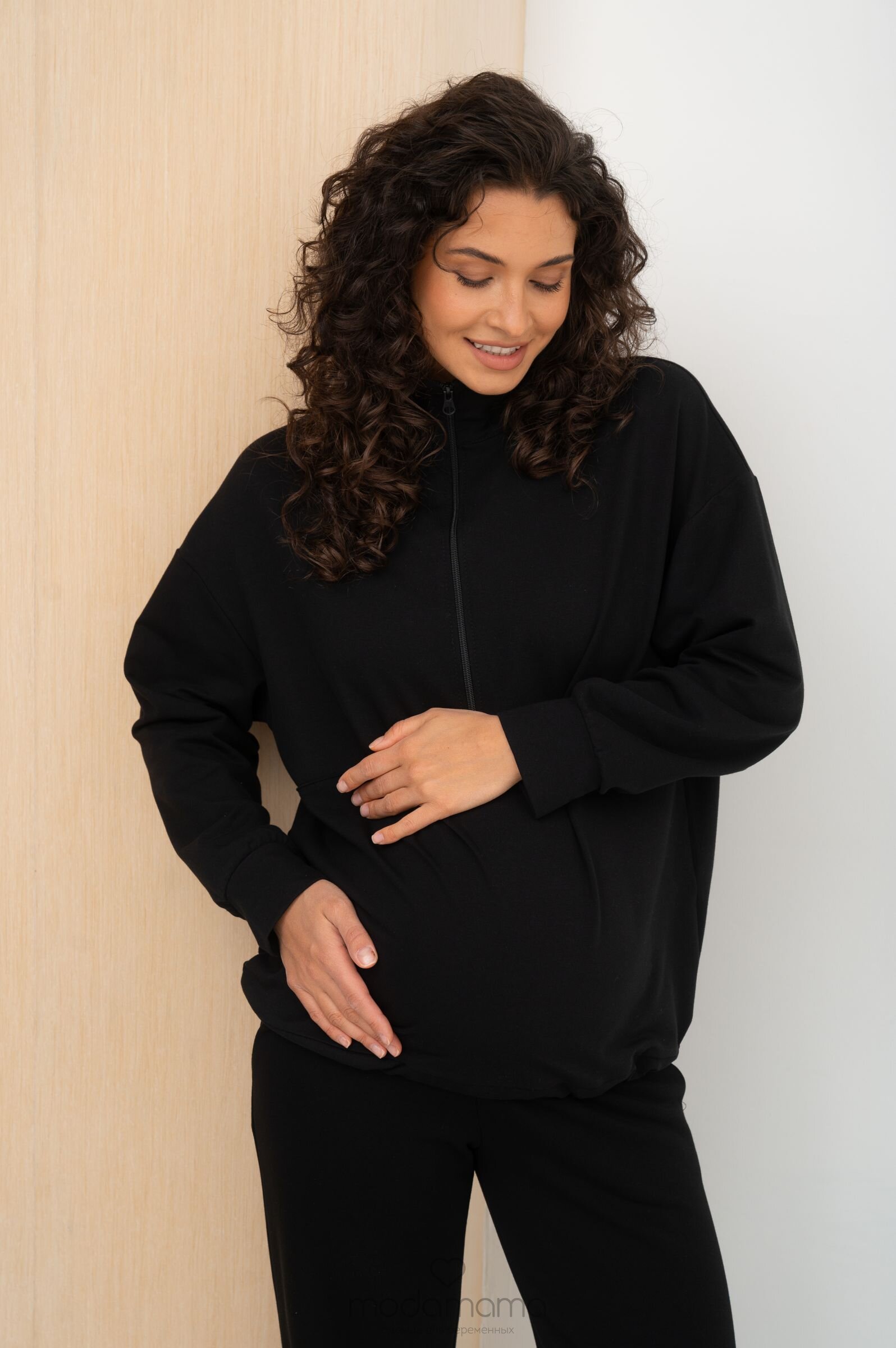 Джемпер для беременных и кормящих мам с акцентной горизонтальной строчкой, резинкой-утяжкой по нижней части и воротником-стойкой на молнии. Выполнен из мягкого, эластичного трикотажа (футер 2-нитка).