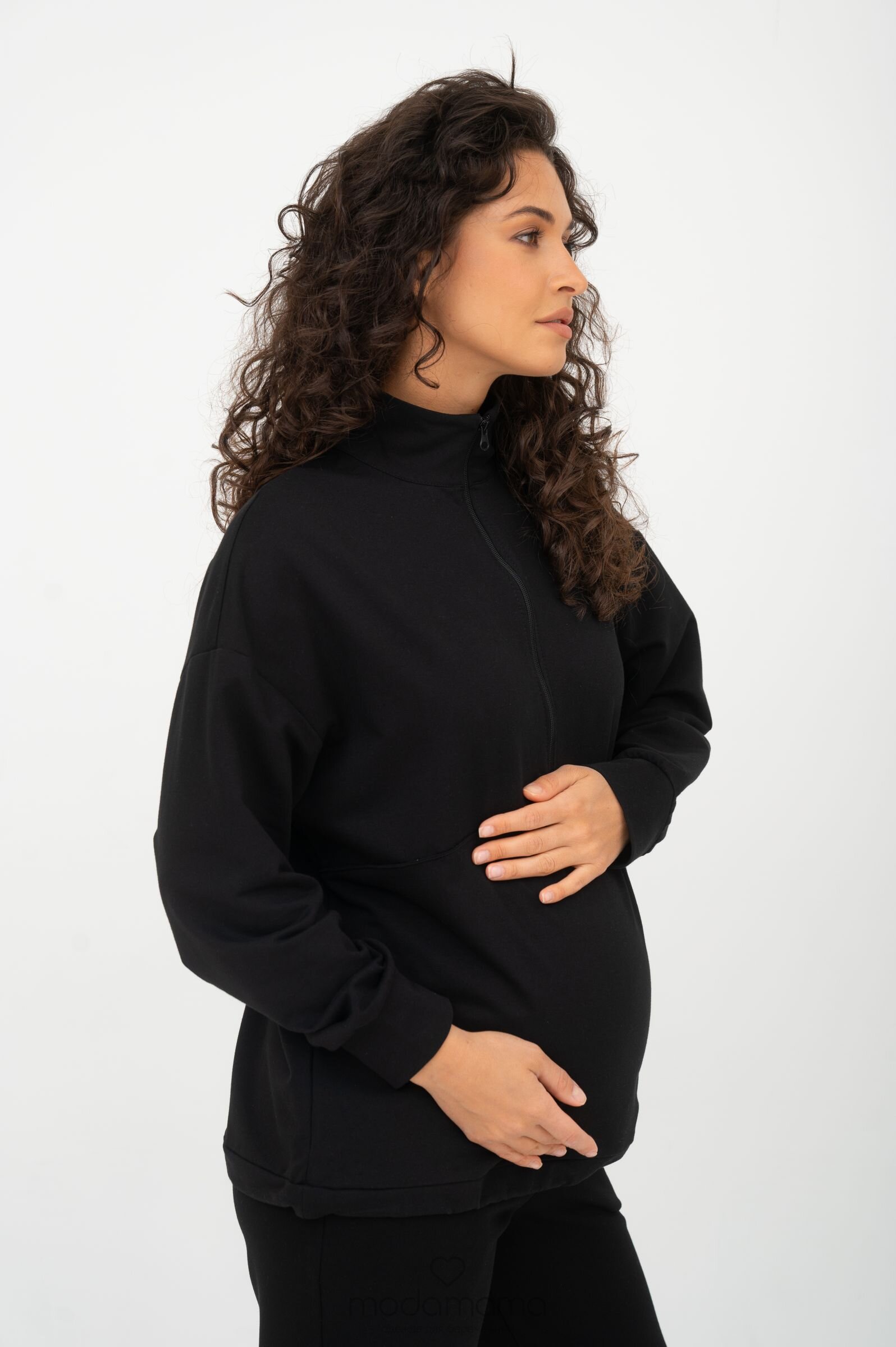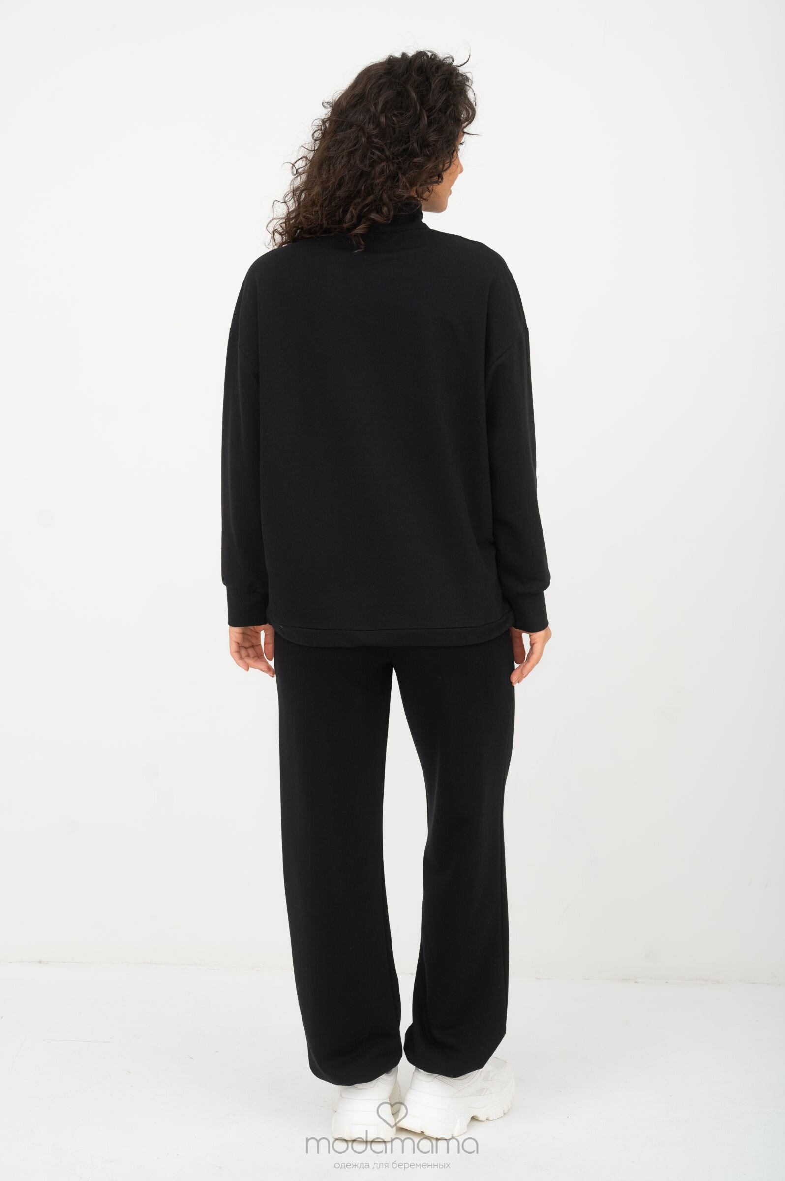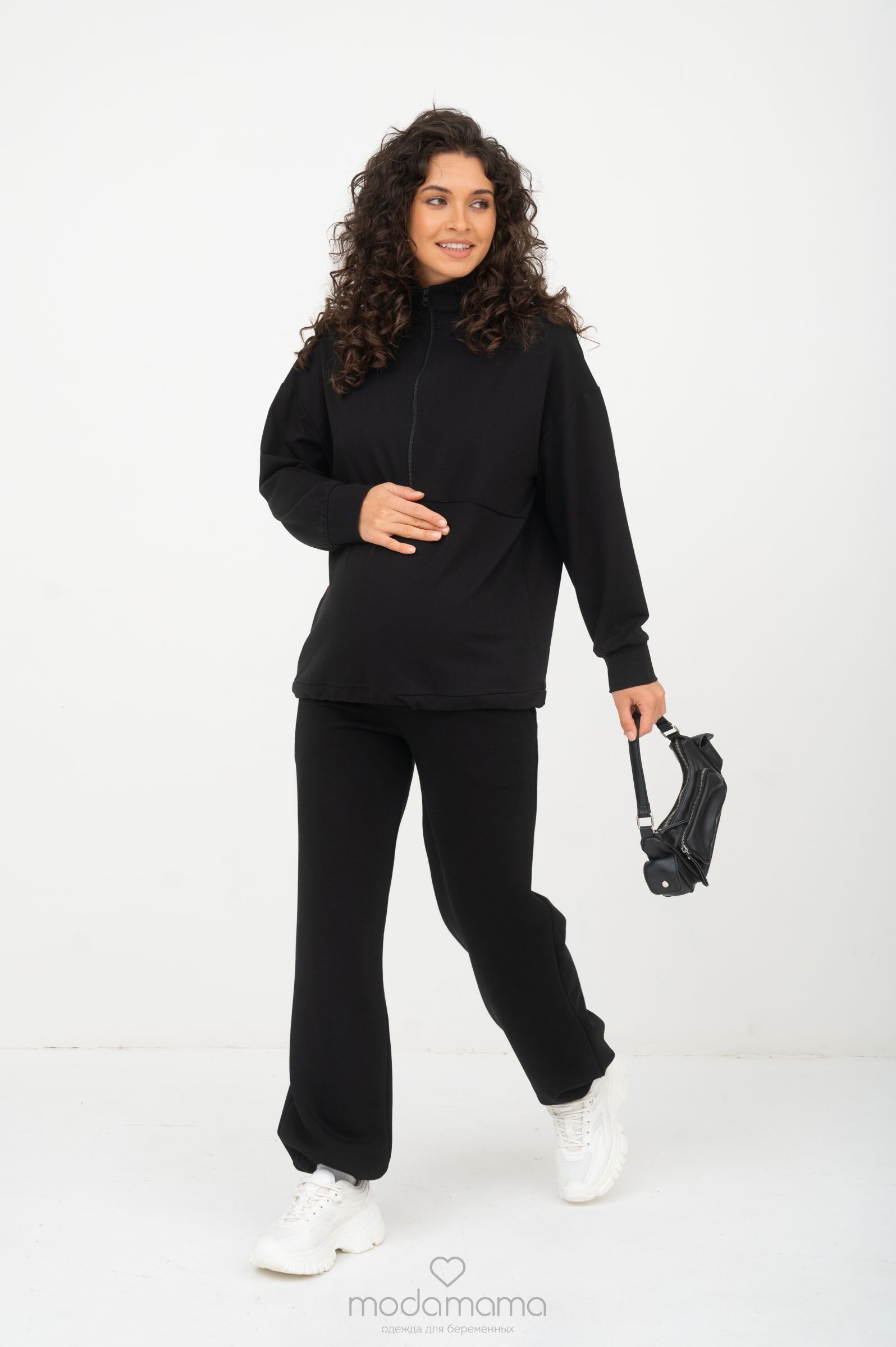 Джемпер для беременных и кормящих мам с акцентной горизонтальной строчкой, резинкой-утяжкой по нижней части и воротником-стойкой на молнии. Выполнен из мягкого, эластичного трикотажа (футер 2-нитка).