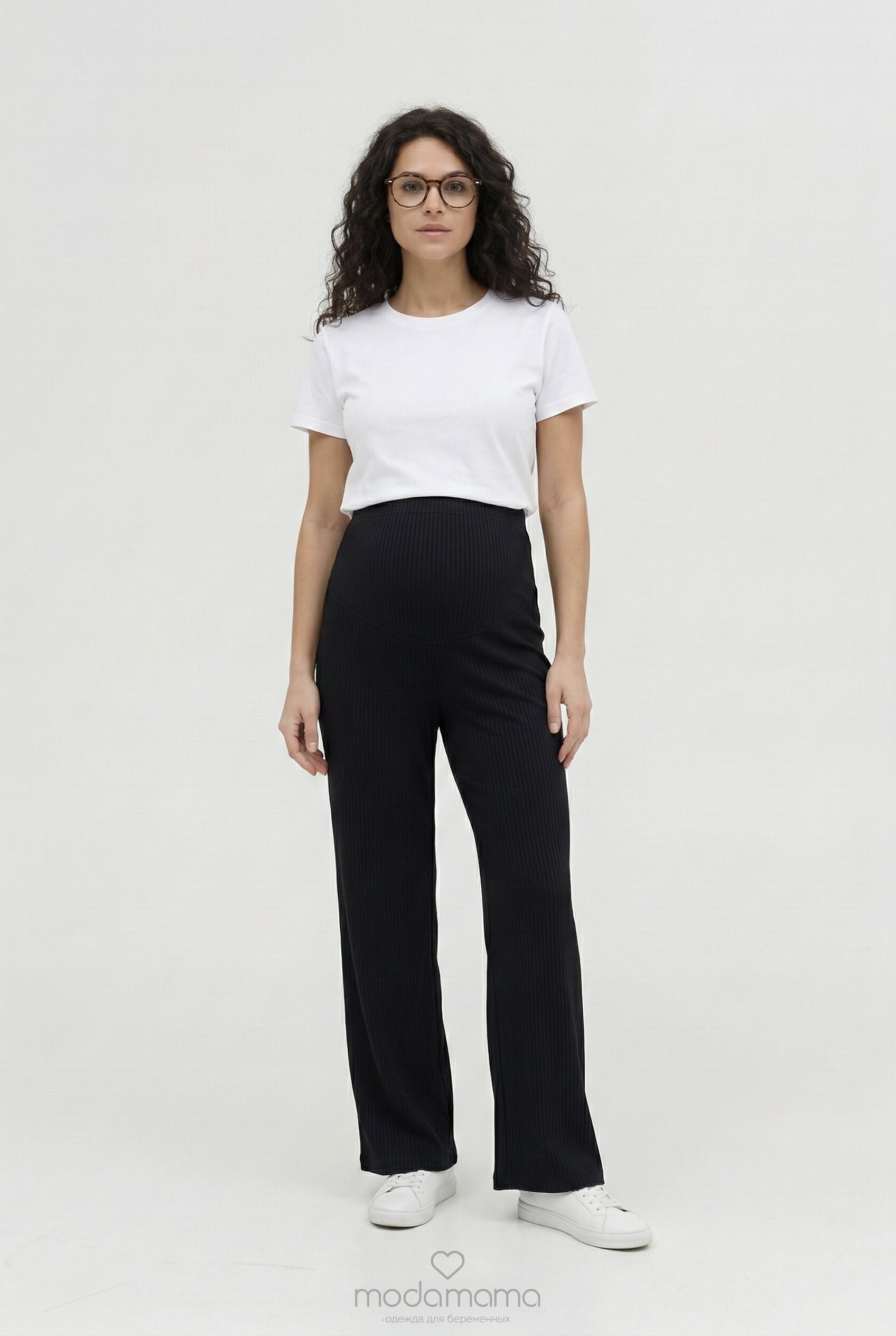 Широкие брюки без бокового шва с высоким круговым бандажем из основной ткани. Выполнены из мягкого, эластичного трикотажа-"лапша". Высокий круговой бандаж из основной ткани регулируется пуговкой по верху.