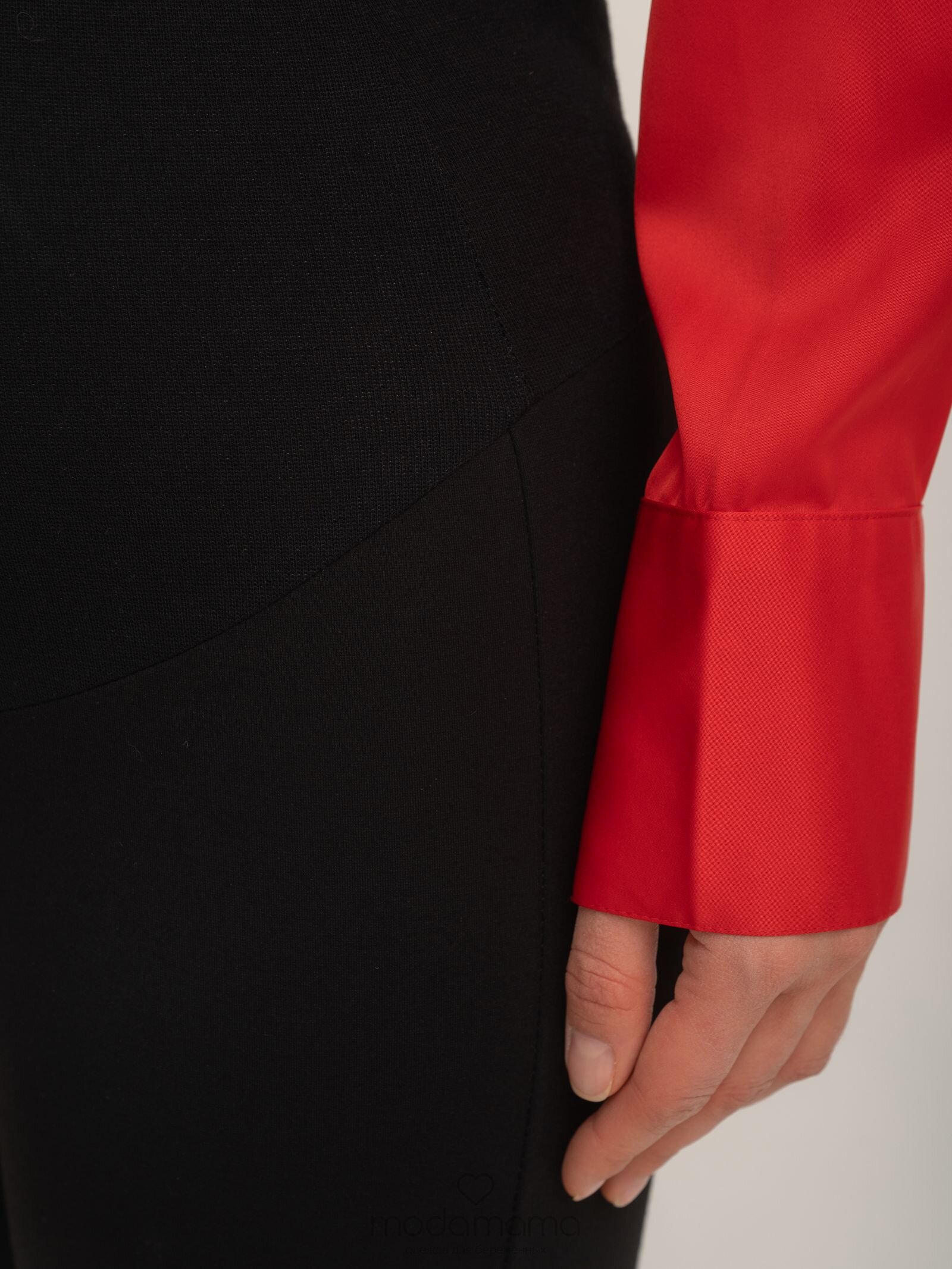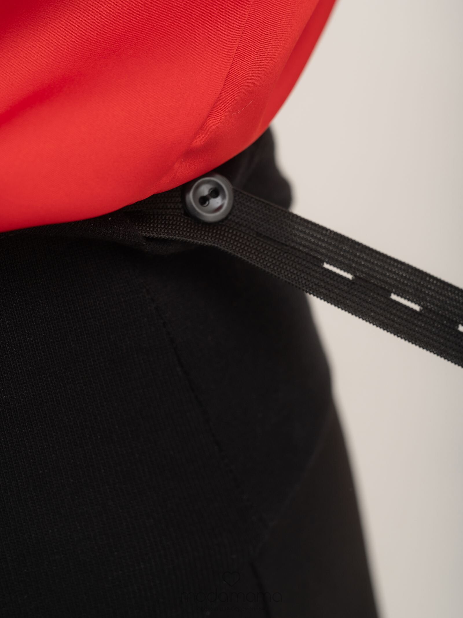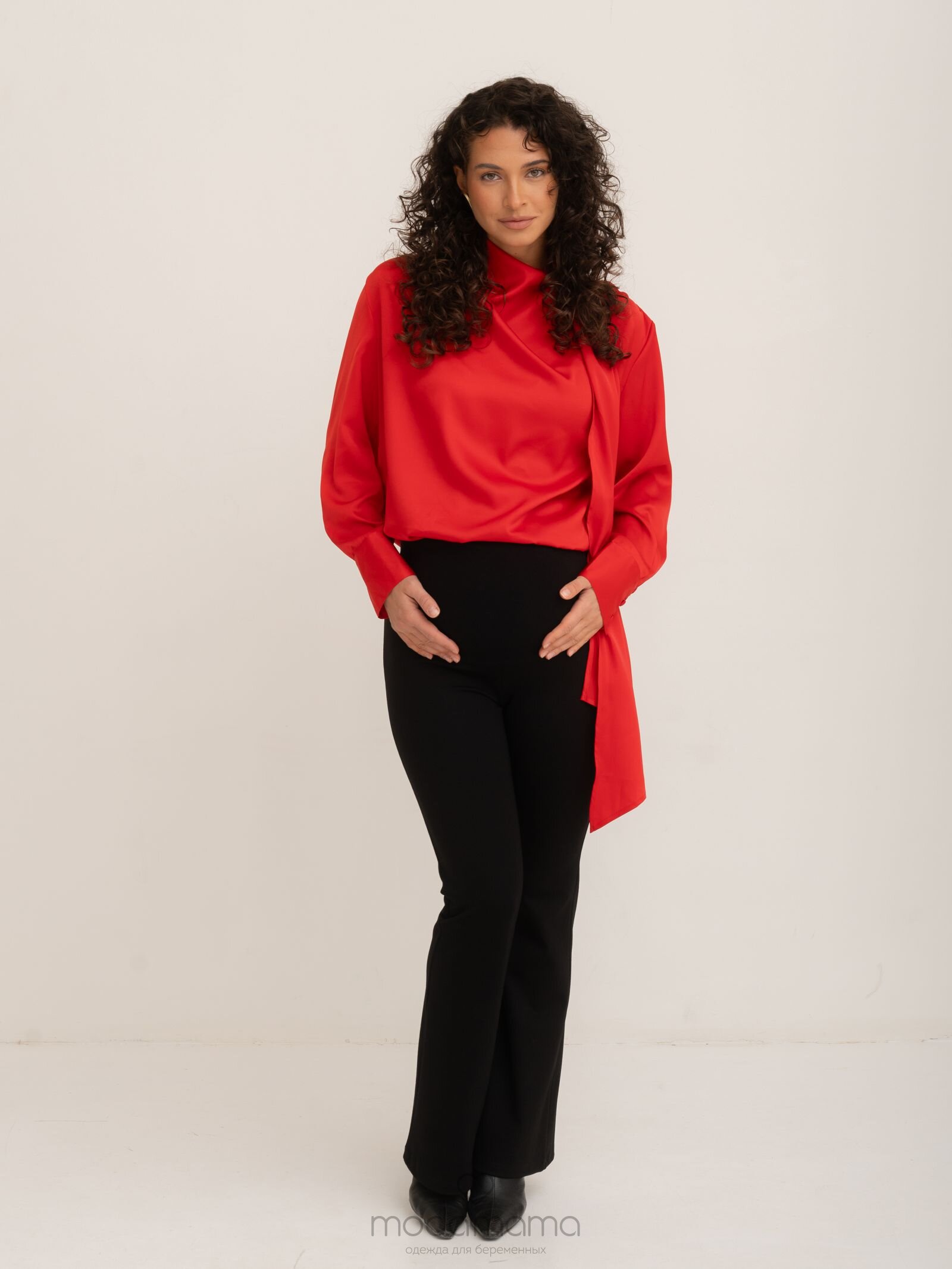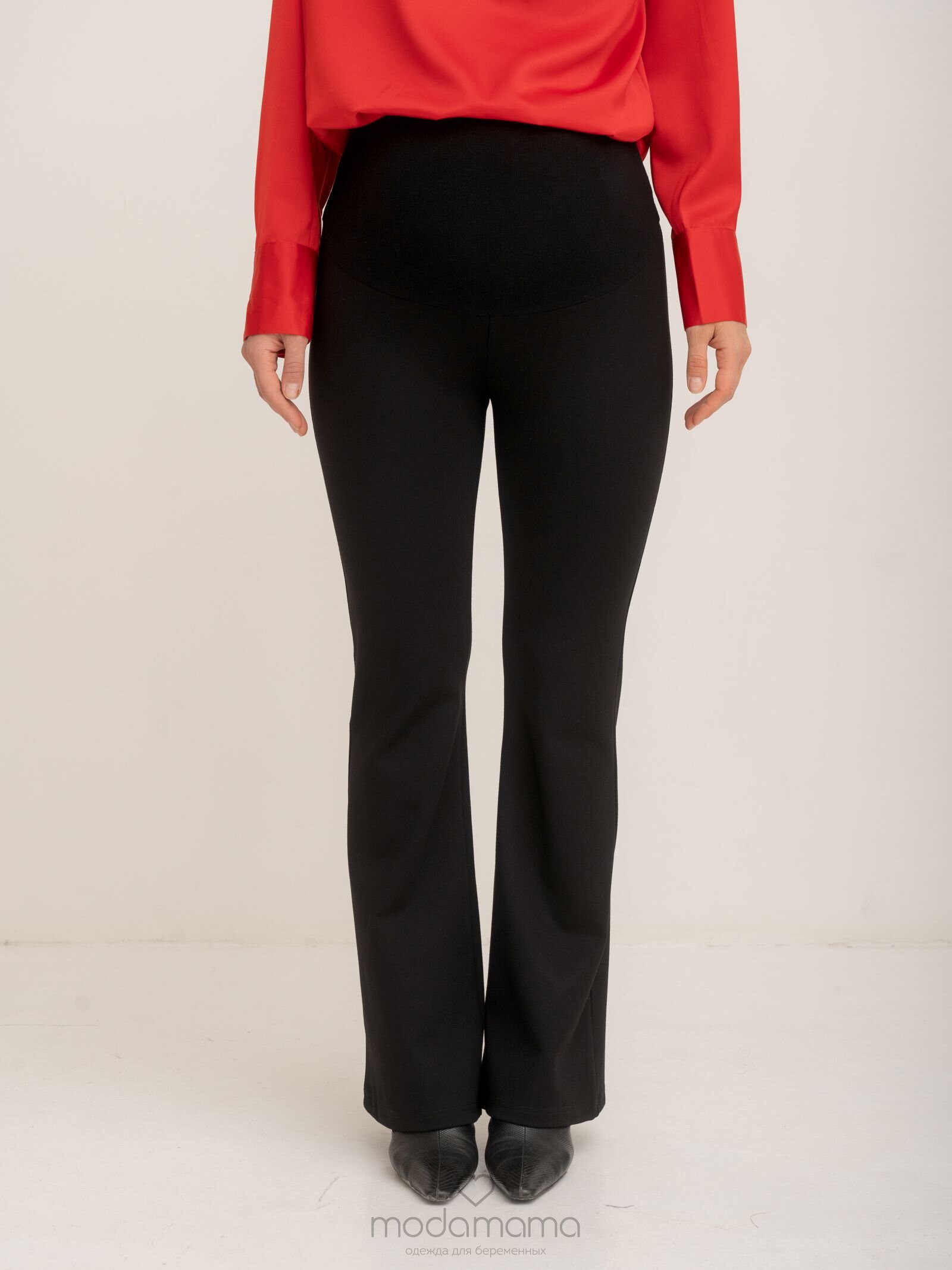 Брюки-клёш для беременных. Высокий трикотажный бандаж регулируется пуговкой по верху. Выполнены из тянущегося брючного трикотажа премиум-джерси средней плотности.