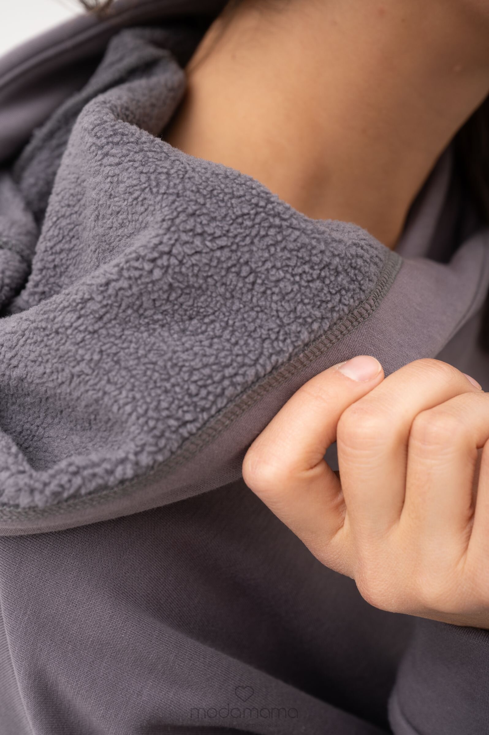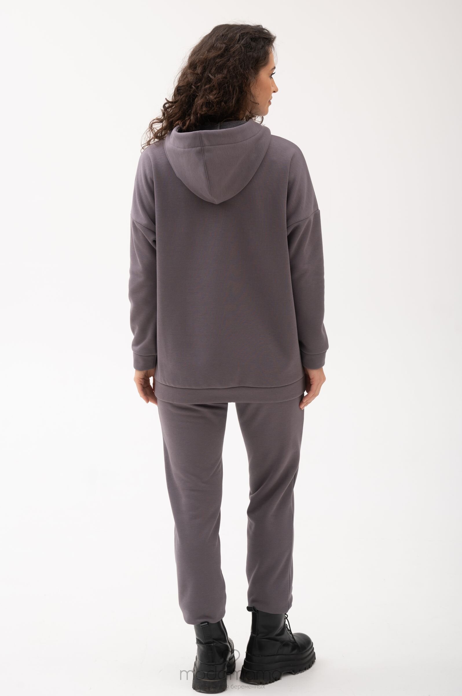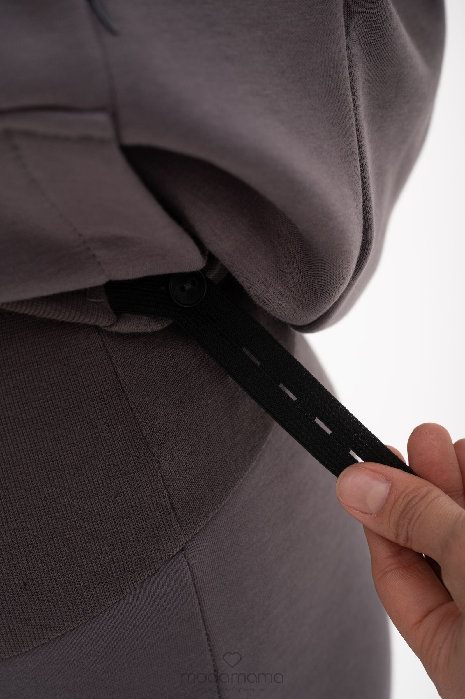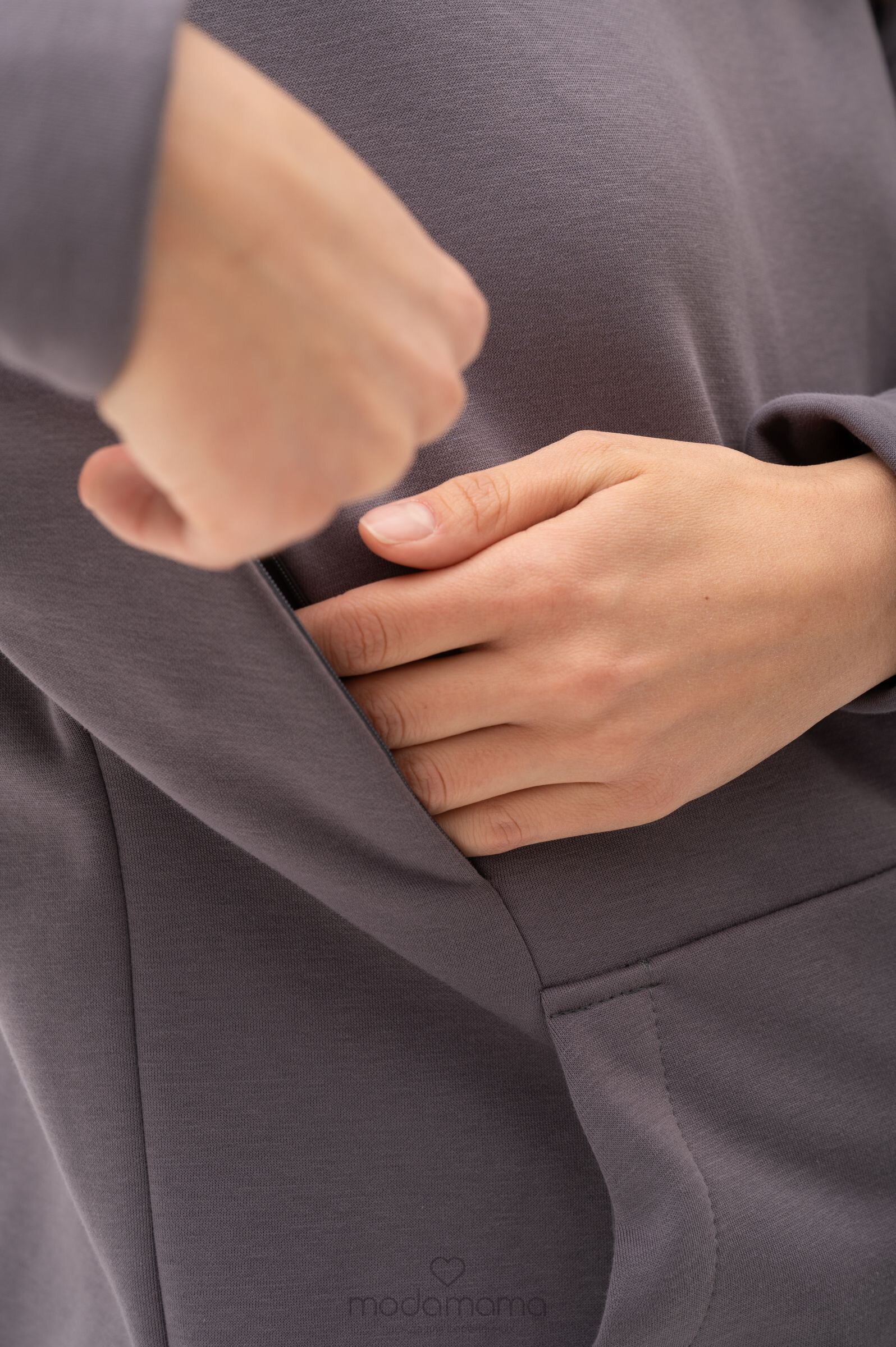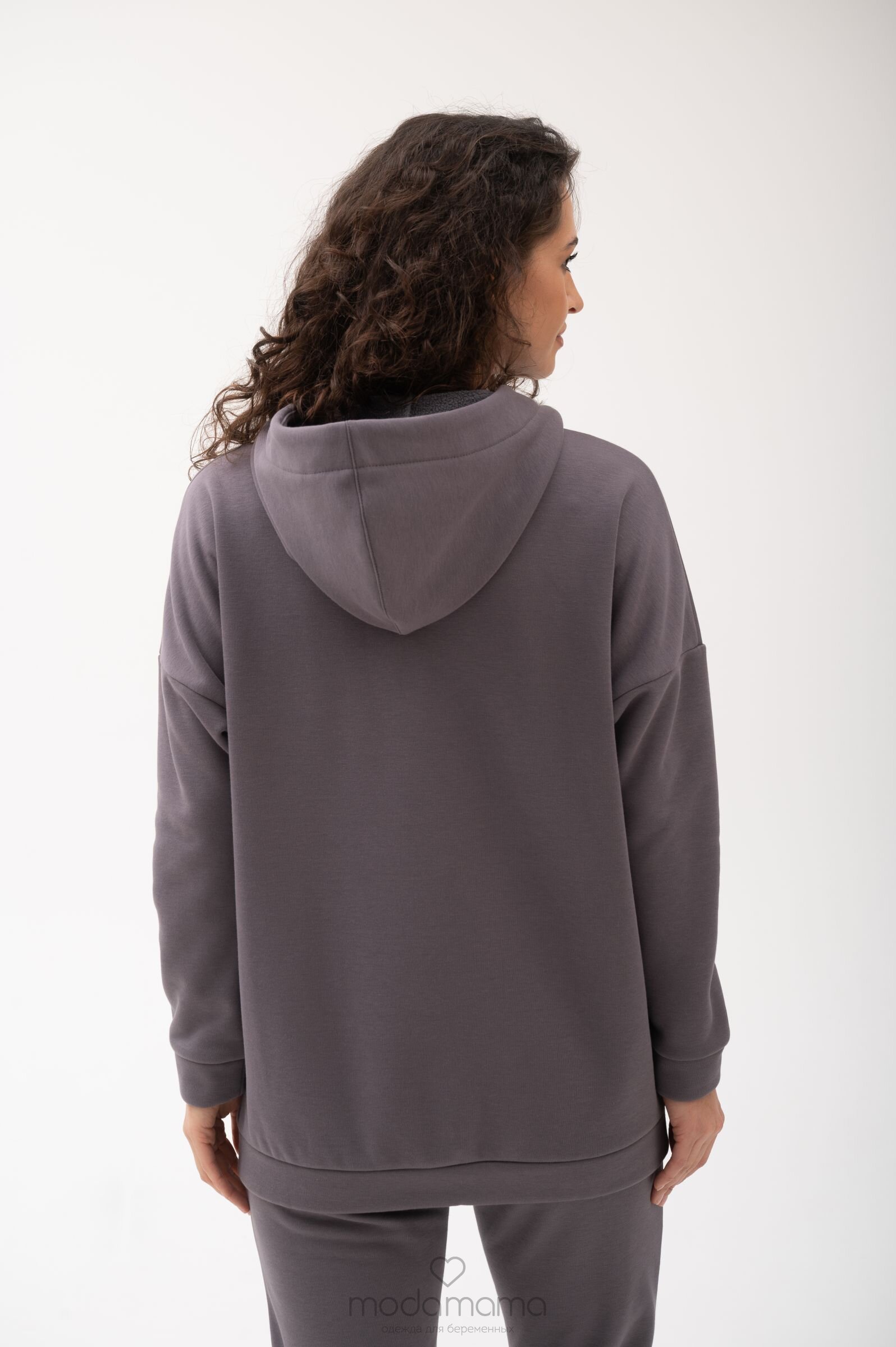 Утеплённый спортивный костюм для беременных и кормящих мам. Худи свободного кроя со спущенным рукавом и карманом-"кенгуру". Секрет для кормления-вертикальные замки-"молнии" в рельефах на груди. Брюки свободного кроя с резинкой по низу,высокий трикотажный бандаж регулируется пуговкой по верху. Костюм выполнен из мягкого, утепленного, тянущегося трикотажа (футер 3-нитка с флисом-"барашек").