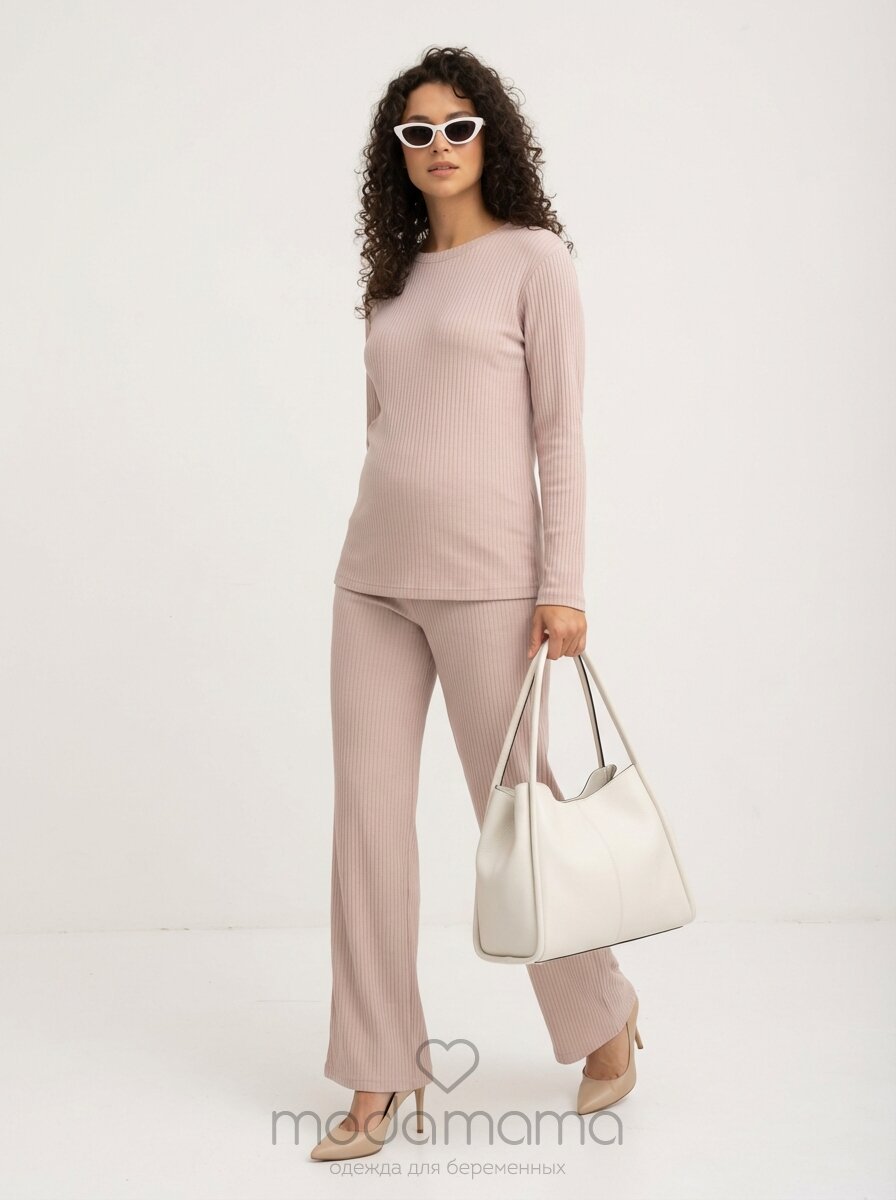 Брючный костюм для беременных из мягкого, эластичного трикотажа-"лапша". Прямой силуэт джемпера с разрезами по бокам позволяет носить его как во время, так и после беременности. Широкие брюки без бокового шва с высоким круговым бандажем из основной ткани регулируются пуговкой по верху. Каждый элемент костюма можно носить по отдельности и сочетать с другими вещами в гардеробе.