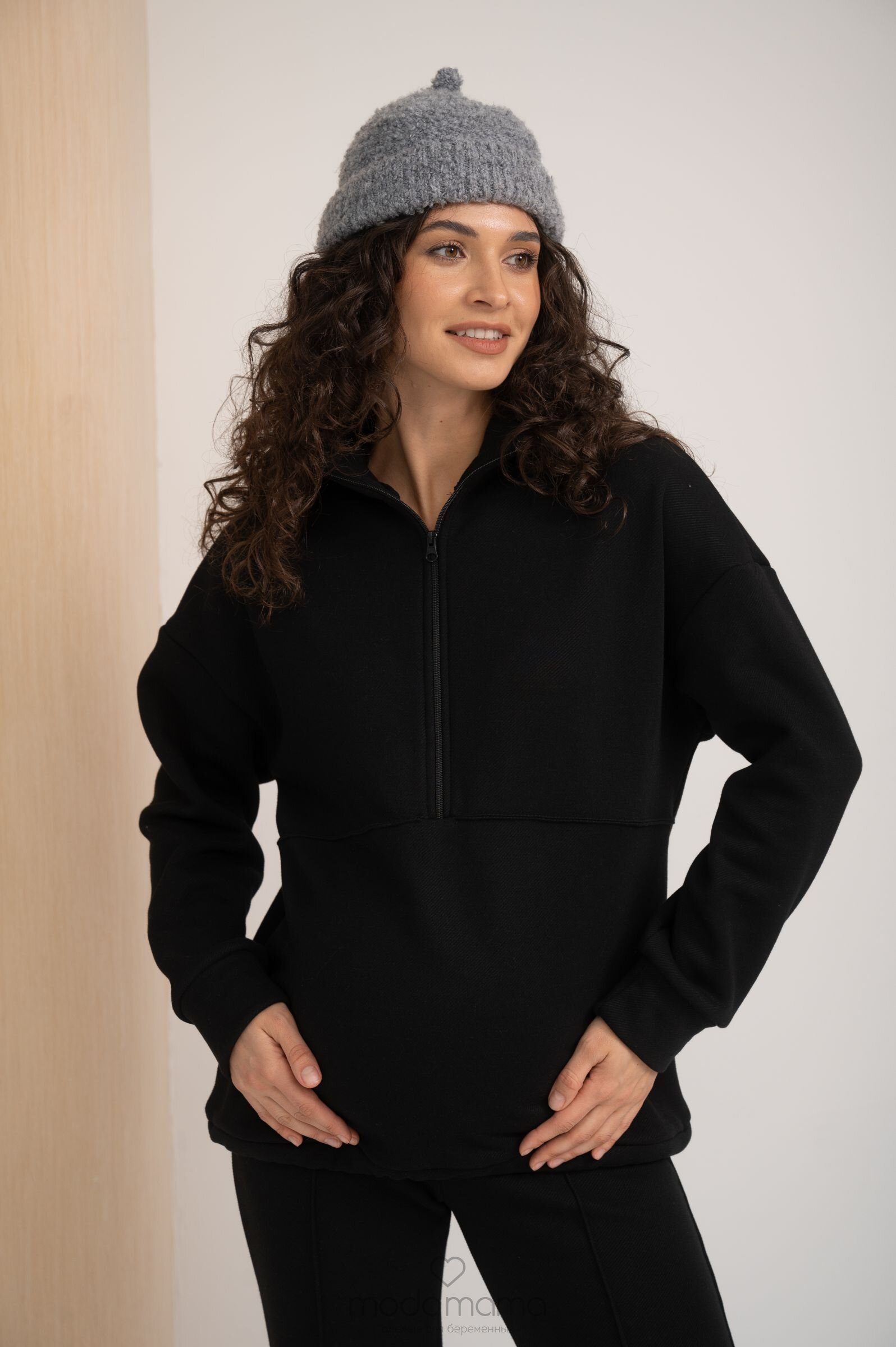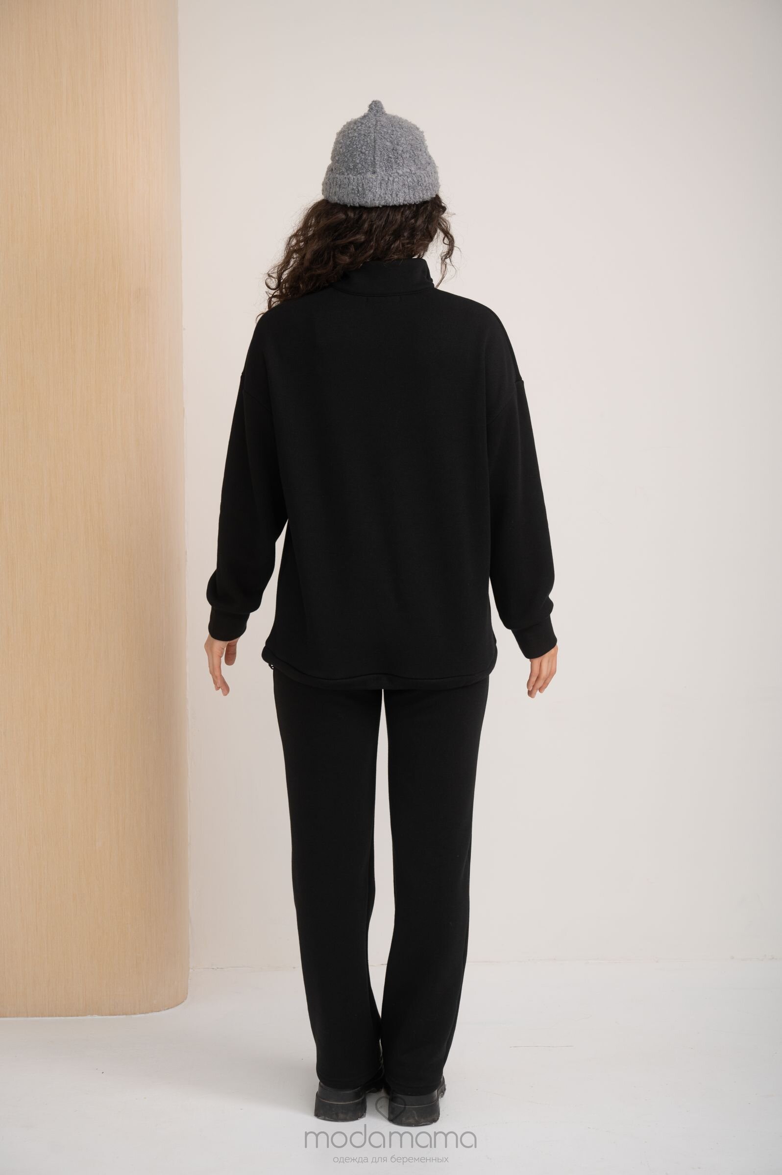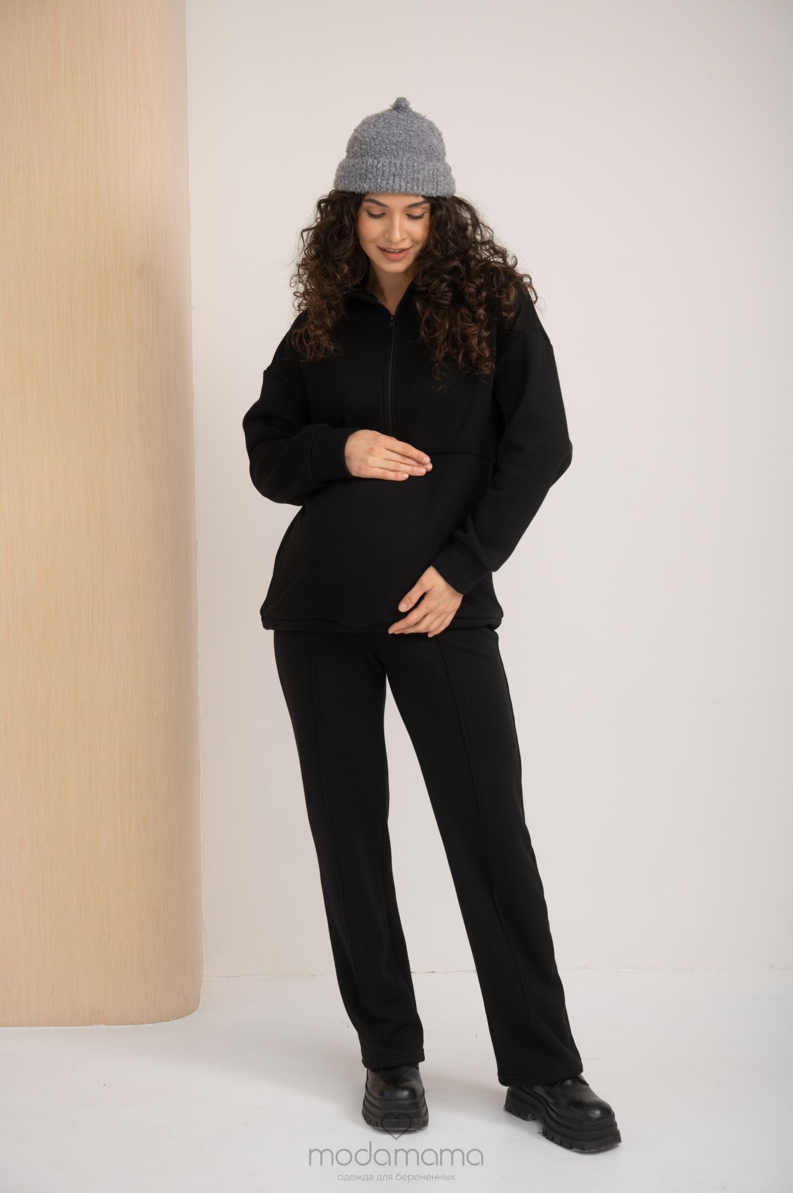 Утепленный спортивный костюм для беременных. Джемпер для беременных и кормящих мам с акцентной горизонтальной строчкой, резинкой-утяжкой по нижней части и воротником-стойкой на молнии, Брюки прямого кроя с отстроченными вертикальными стрелками. Высокий круговой трикотажный бандаж регулируется пуговкой по верху. Выполнен из мягкого, утепленного, тянущегося трикотажа (футер 3-нитка с флисом-"барашек").