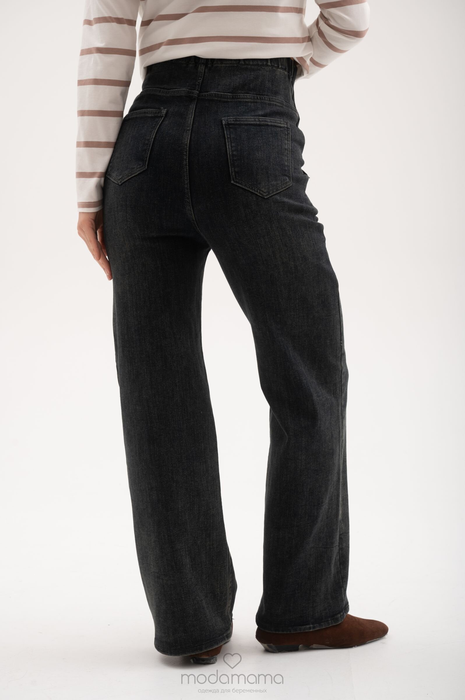 Джинсы свободного прямого кроя для беременных. Сзади по спинке резинка, обеспечивающая плотное прилегание к пояснице. Высокий трикотажный бандаж на передней части регулируется пуговкой по верху. Выполнены из плотной, мягкой, очень эластичной джинсы с бархатистой петельчатой изнанкой. Размеры соответствуют 25-XS; 26-S; 27- M; 28-L; 29-XL.