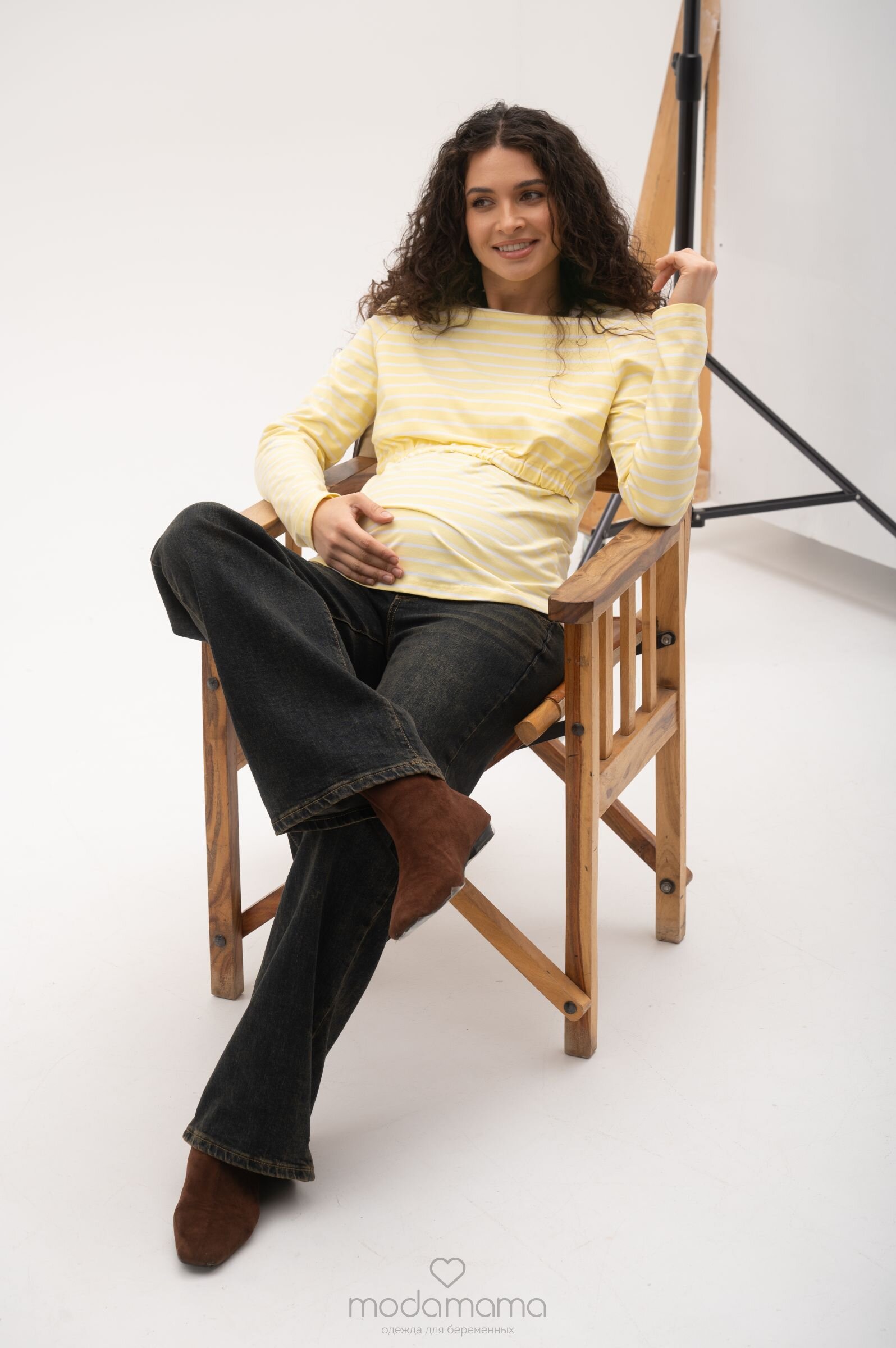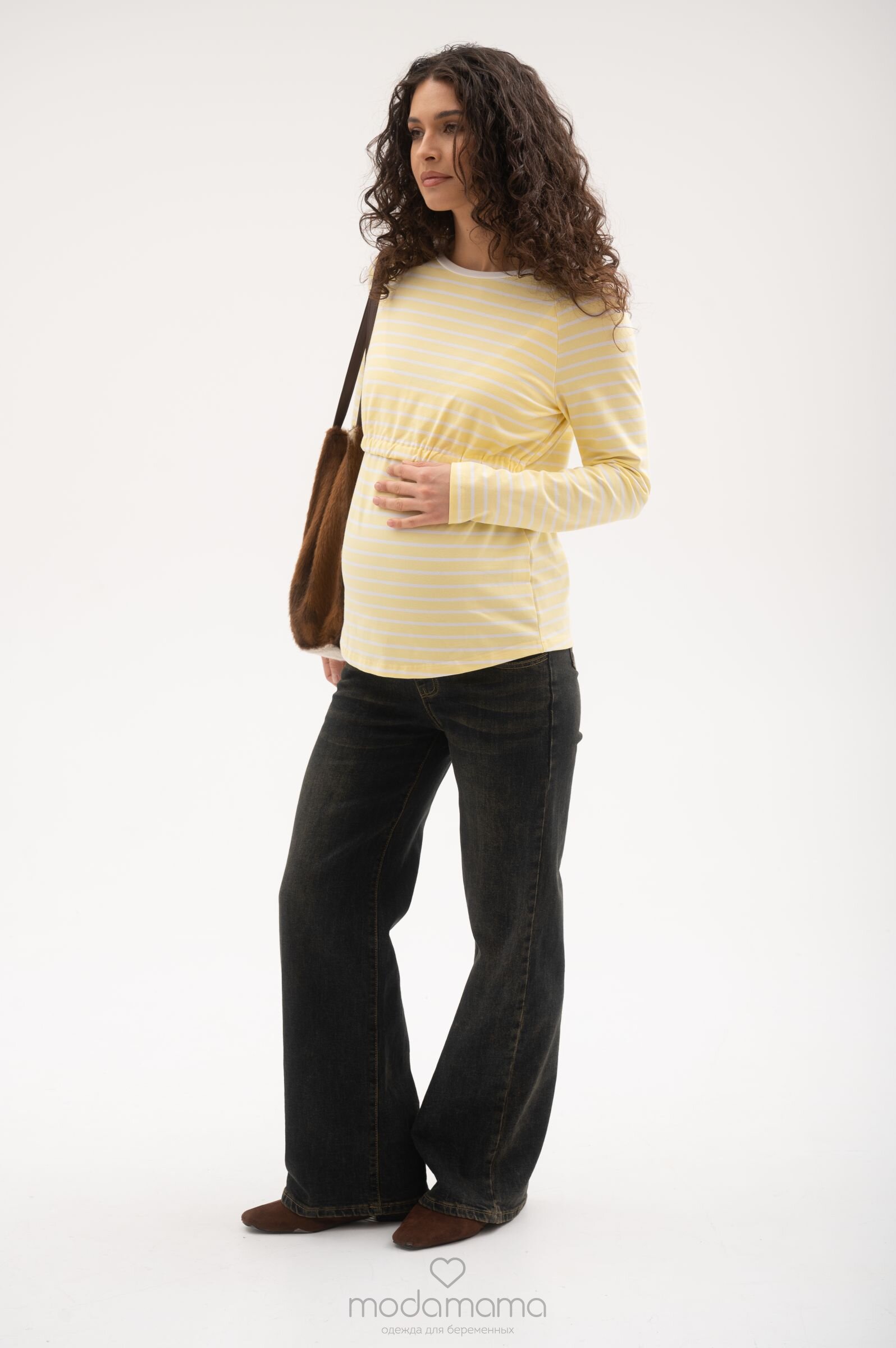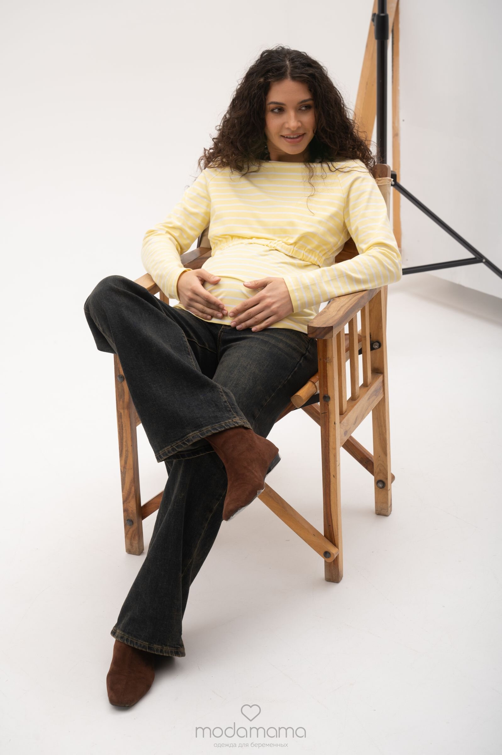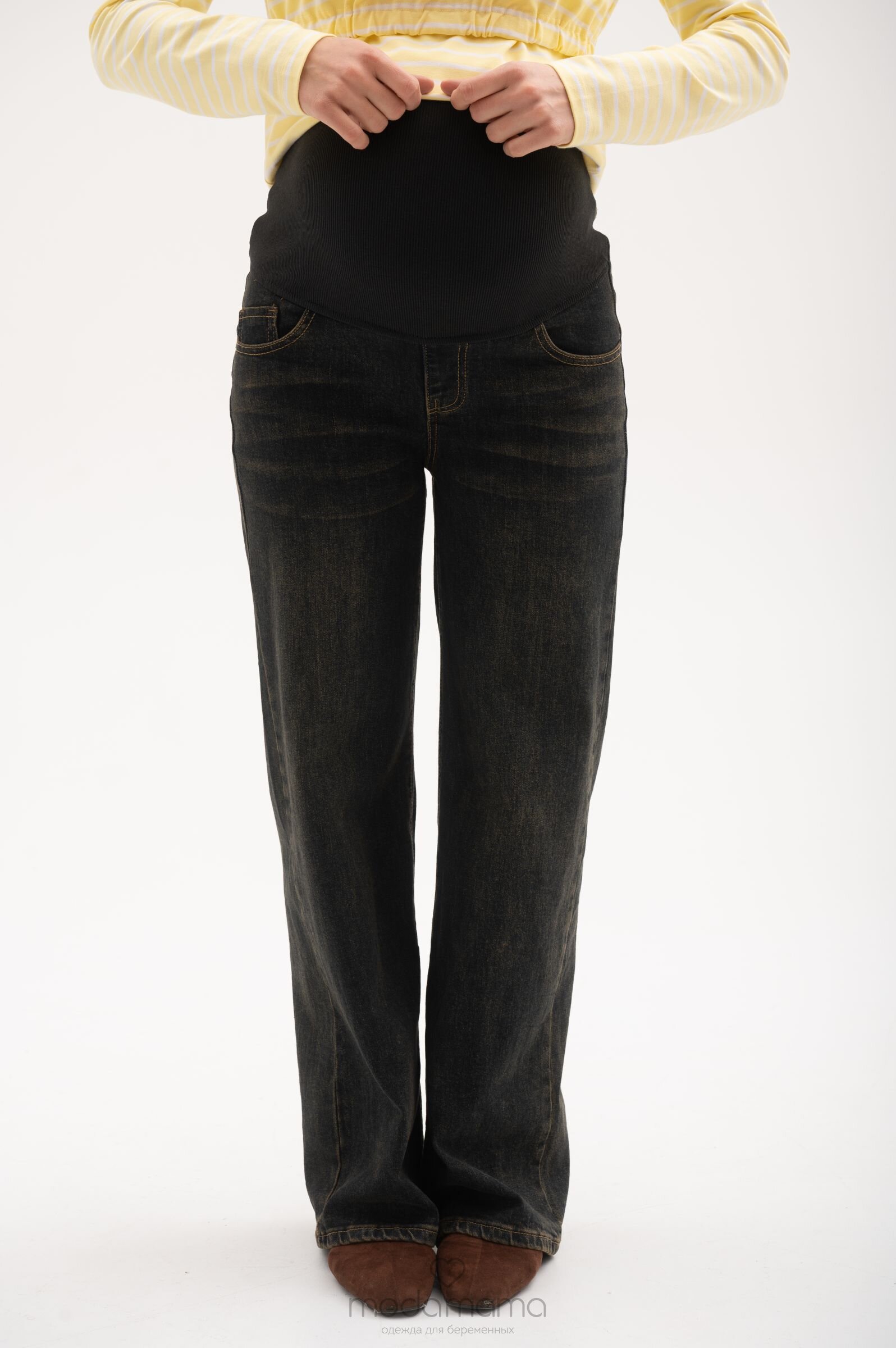 Джинсы свободного прямого кроя для беременных. Сзади по спинке резинка, обеспечивающая плотное прилегание к пояснице. Высокий трикотажный бандаж на передней части регулируется пуговкой по верху. Выполнены из плотной, мягкой, эластичной джинсы. Размеры соответствуют 25-XS; 26-S; 27- M; 28-L; 29-XL.