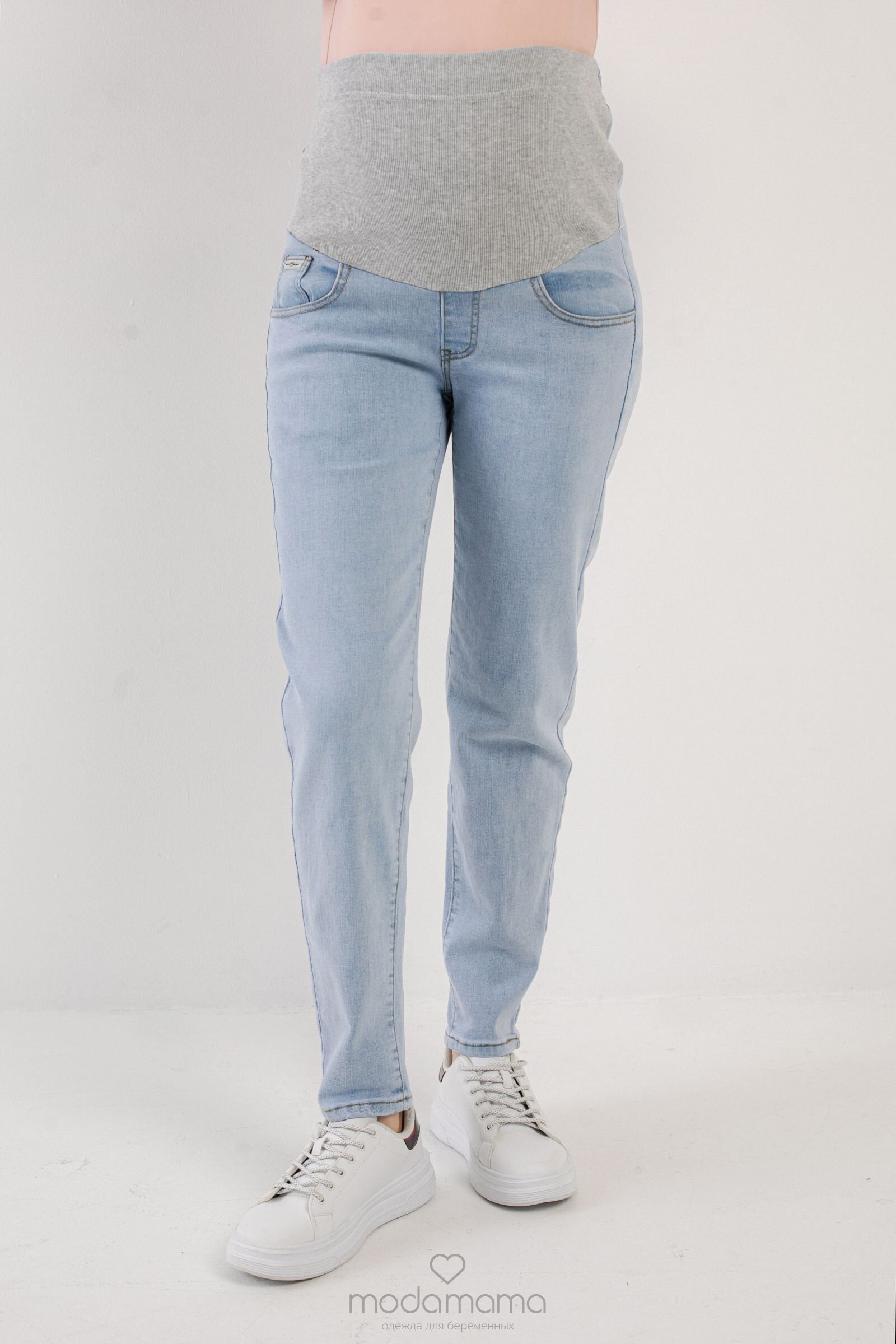 Джинсы-момс для беременных. Выполнены из тонкой эластичной джинсы. Высокий трикотажный бандаж на передней части регулируется пуговкой сверху. Размеры соответствуют 25-XS; 26-S; 27- M; 28-L; 29-XL.